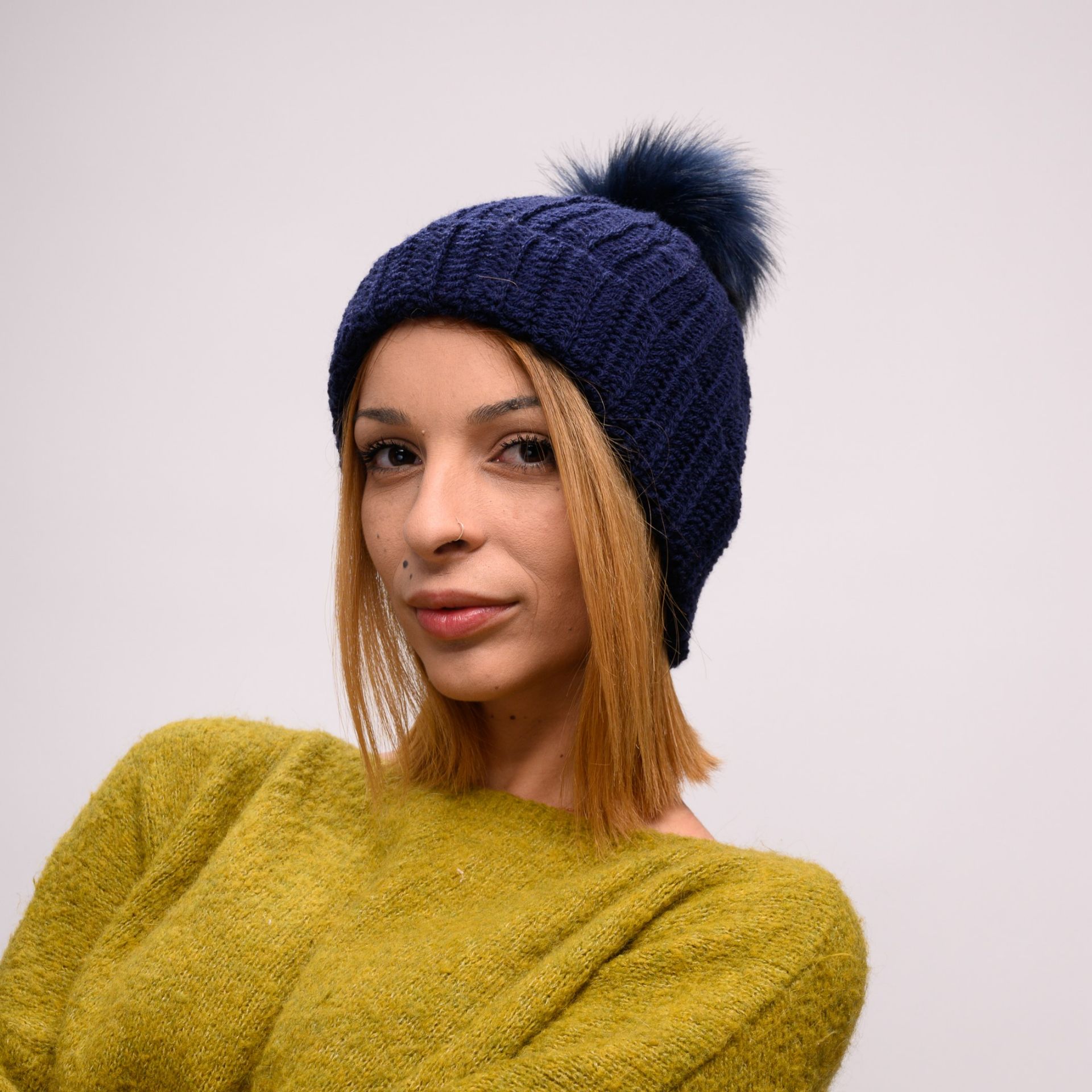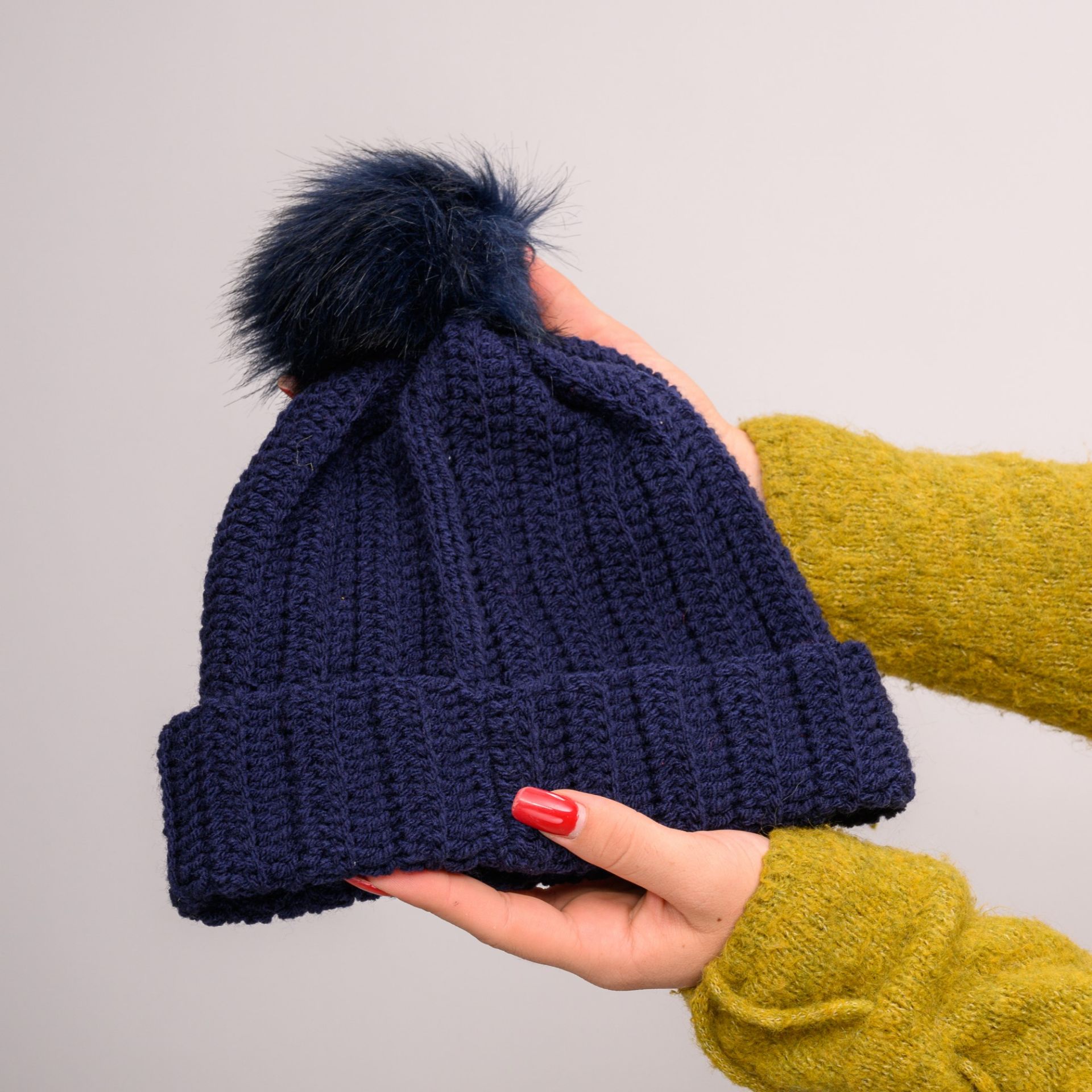 Πλεκτός σκούφος μπλε σκούρο