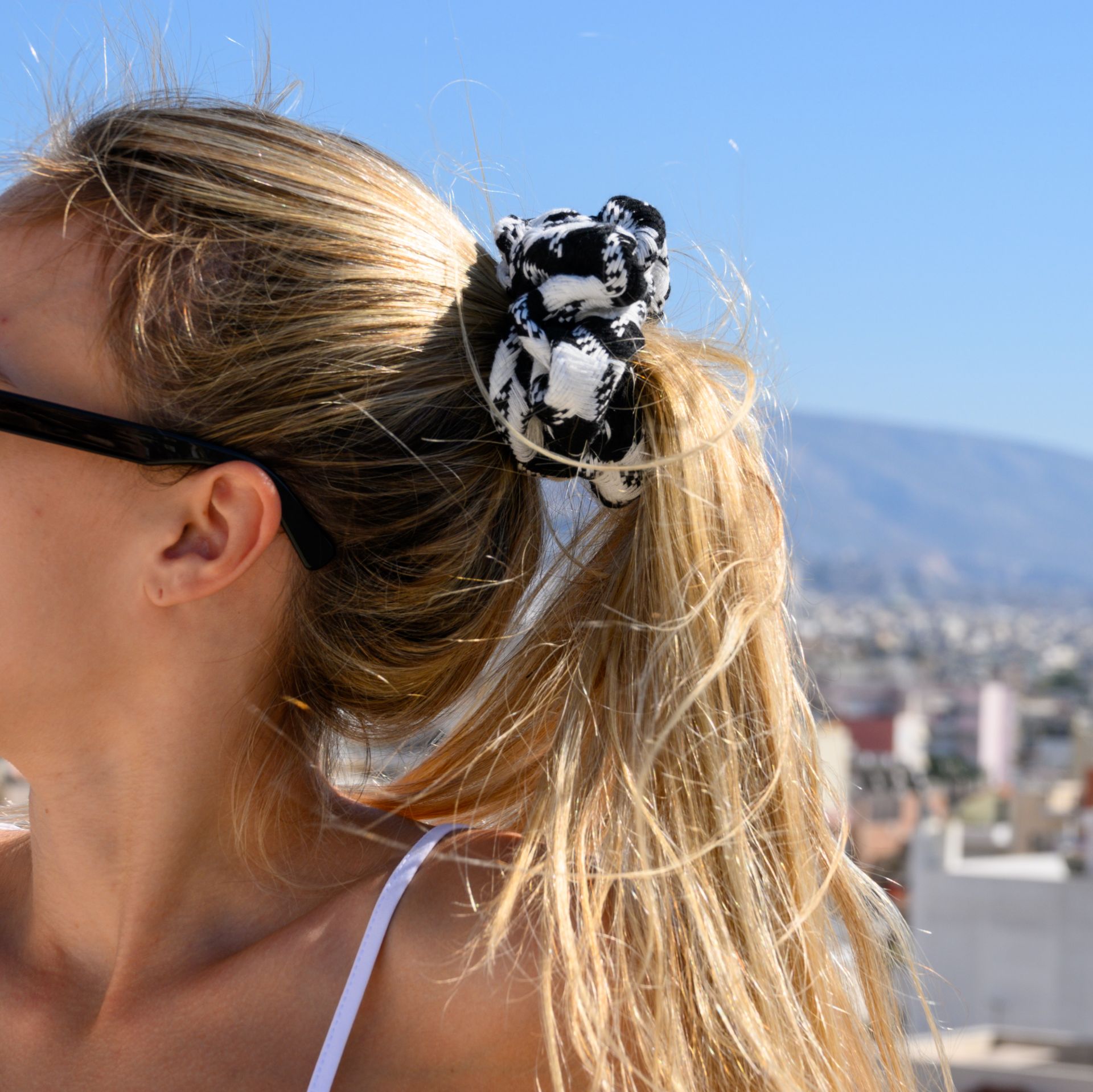 Λαστιχάκι μαλλιών ασπρόμαυρο καρό