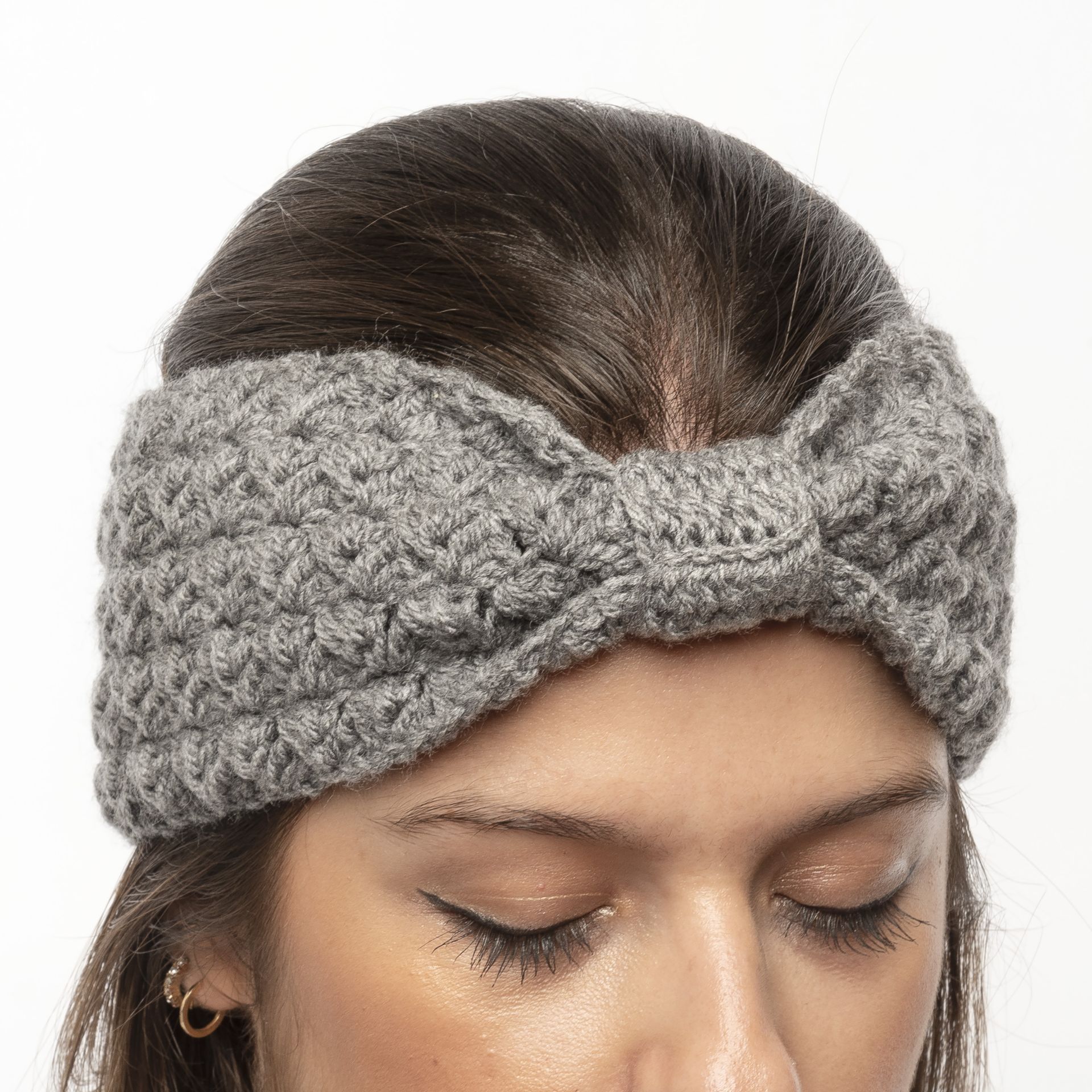 Πλεκτή κορδέλα με δέσιμο γκρί