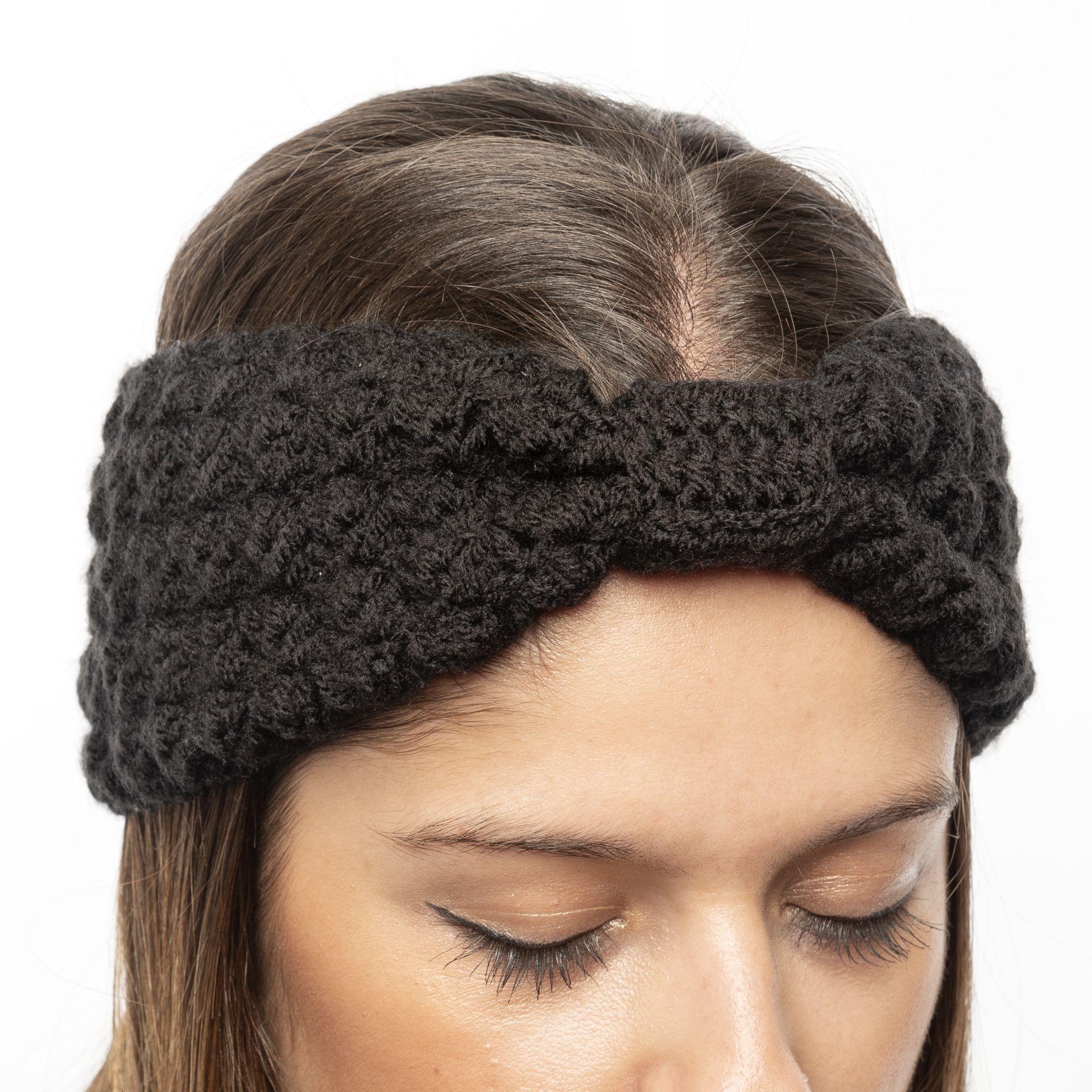 Πλεκτή κορδέλα με δέσιμο μαύρη
