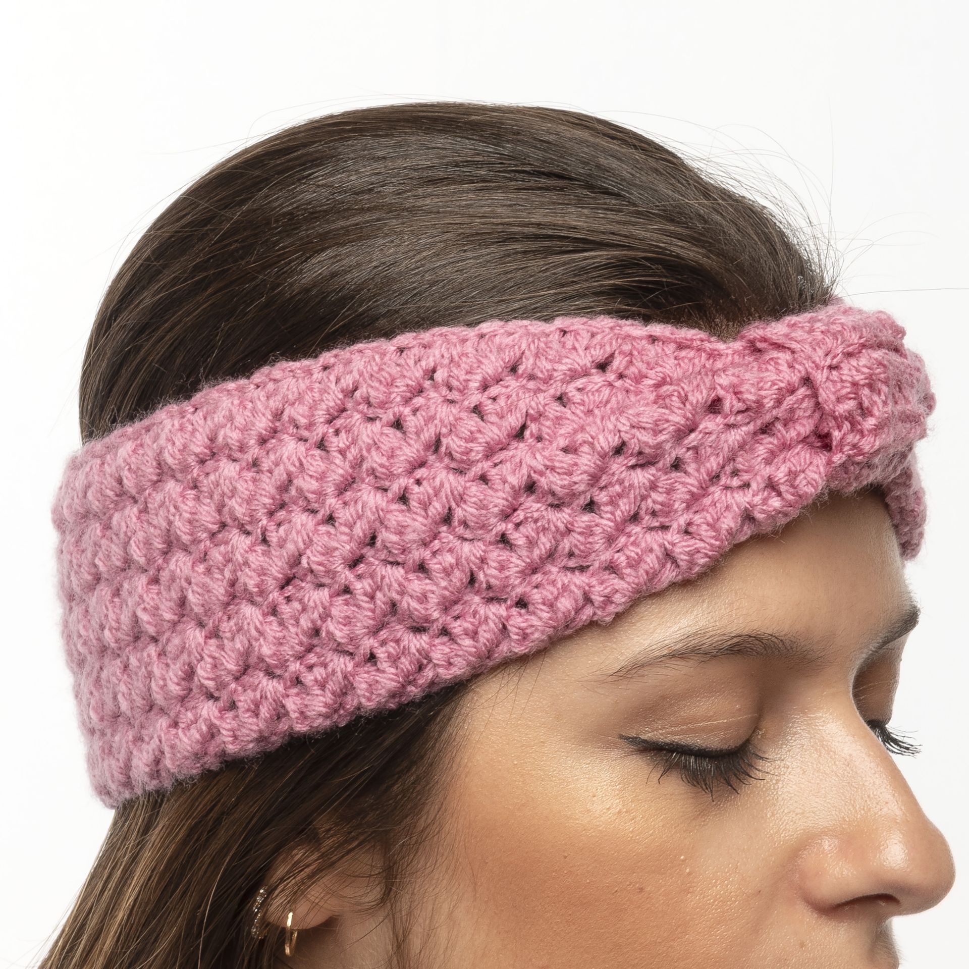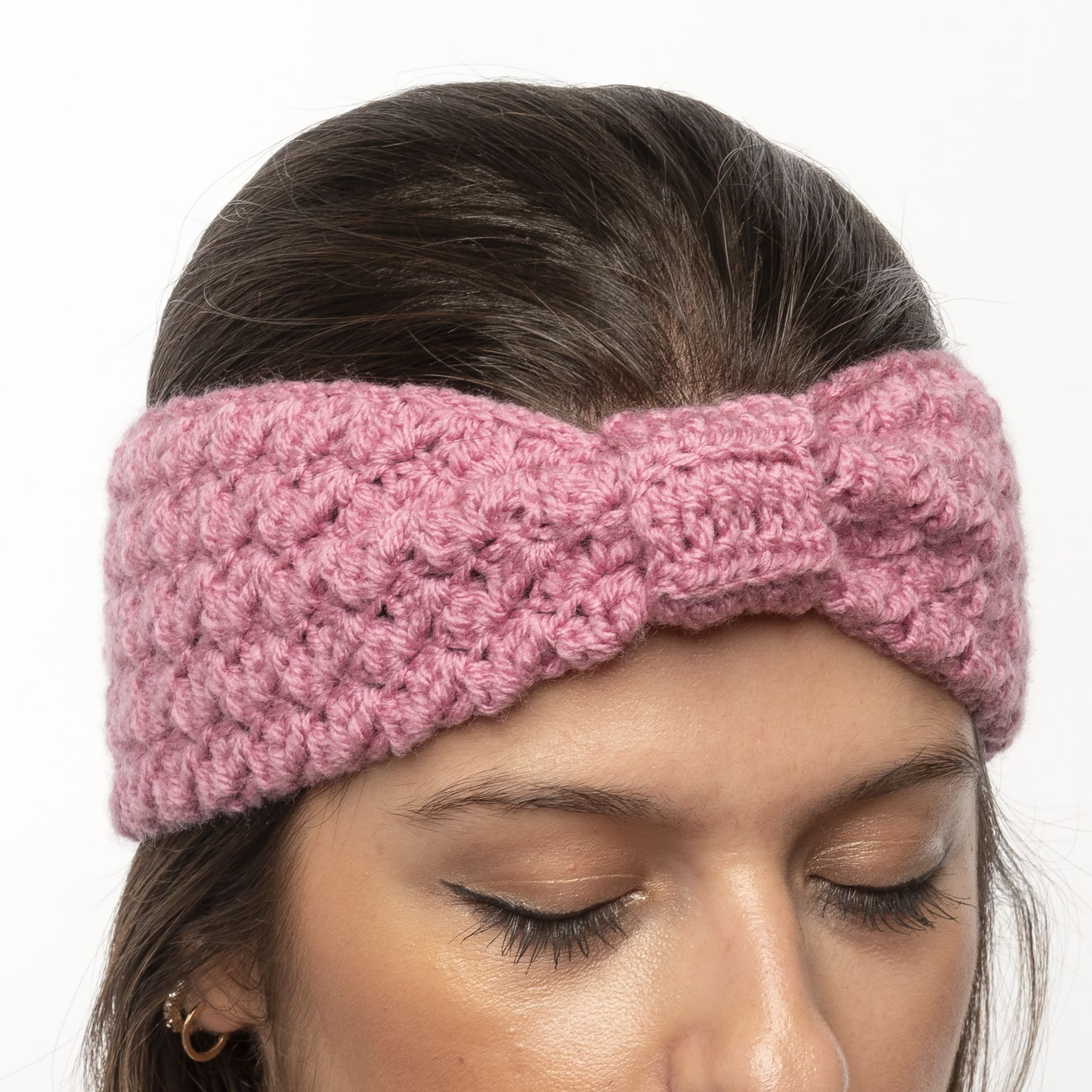 Πλεκτή κορδέλα με δέσιμο σκούρο ροζ