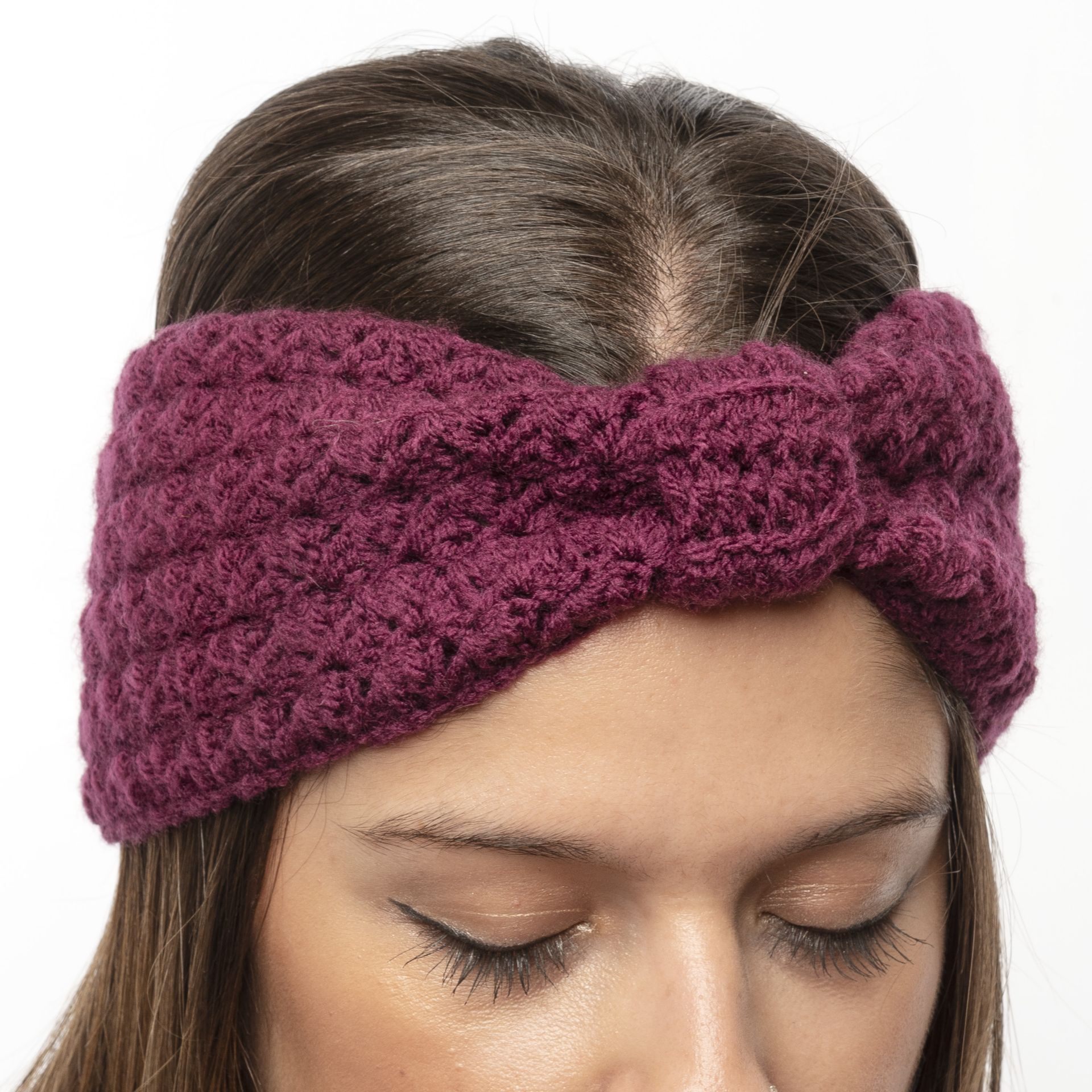 Πλεκτή κορδέλα με δέσιμο σκούρο μωβ