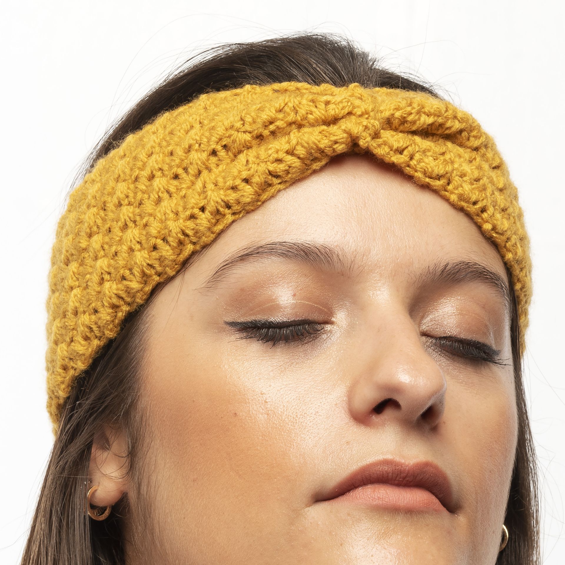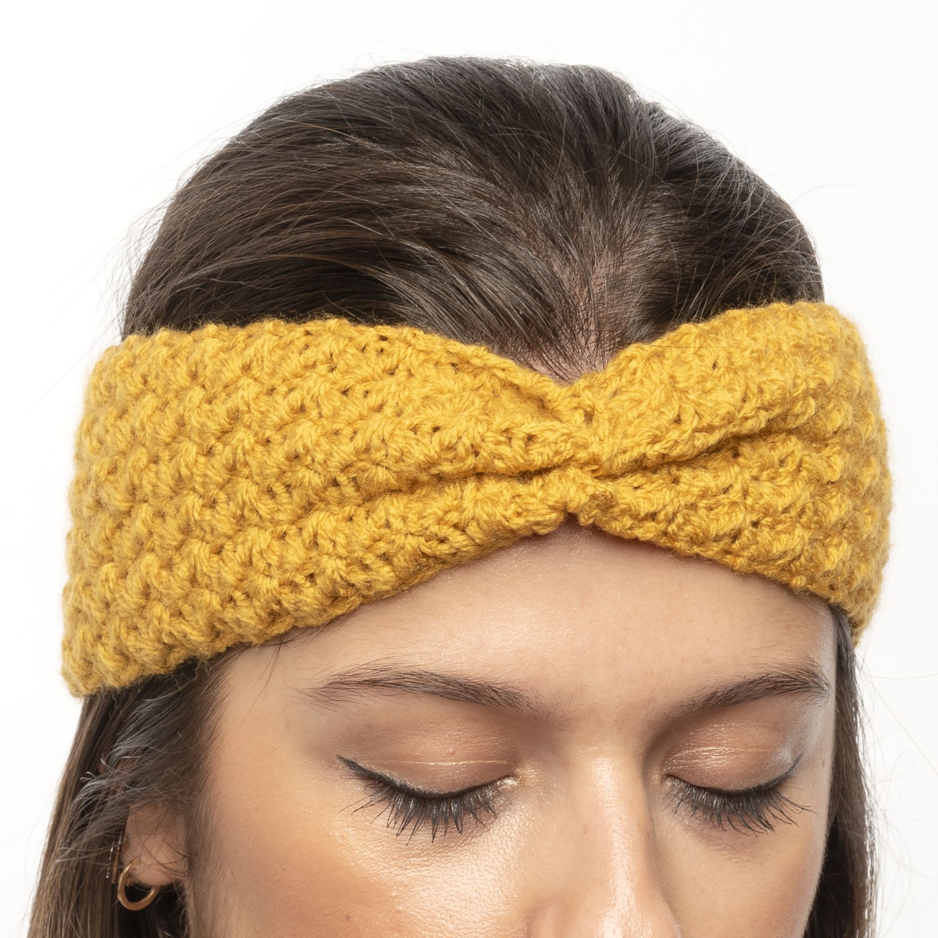Χειροποίητη πλεκτή κορδέλα με σούρα μουσταρδί