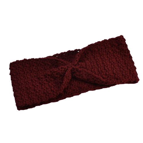 Χειροποίητη πλεκτή κορδέλα με σούρα μπορντό