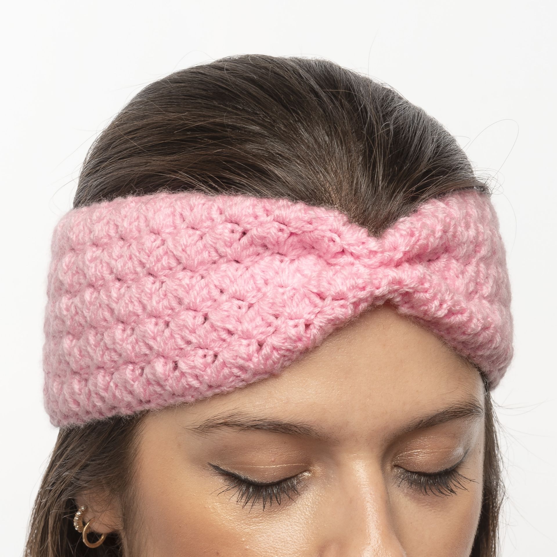 Χειροποίητη πλεκτή κορδέλα με σούρα ροζ