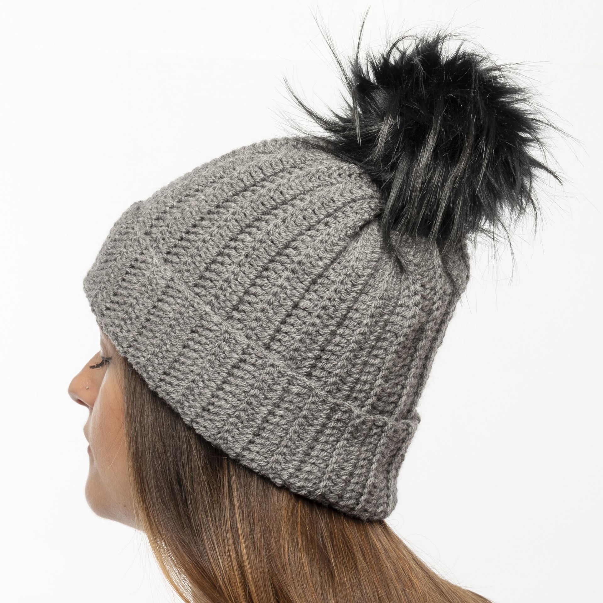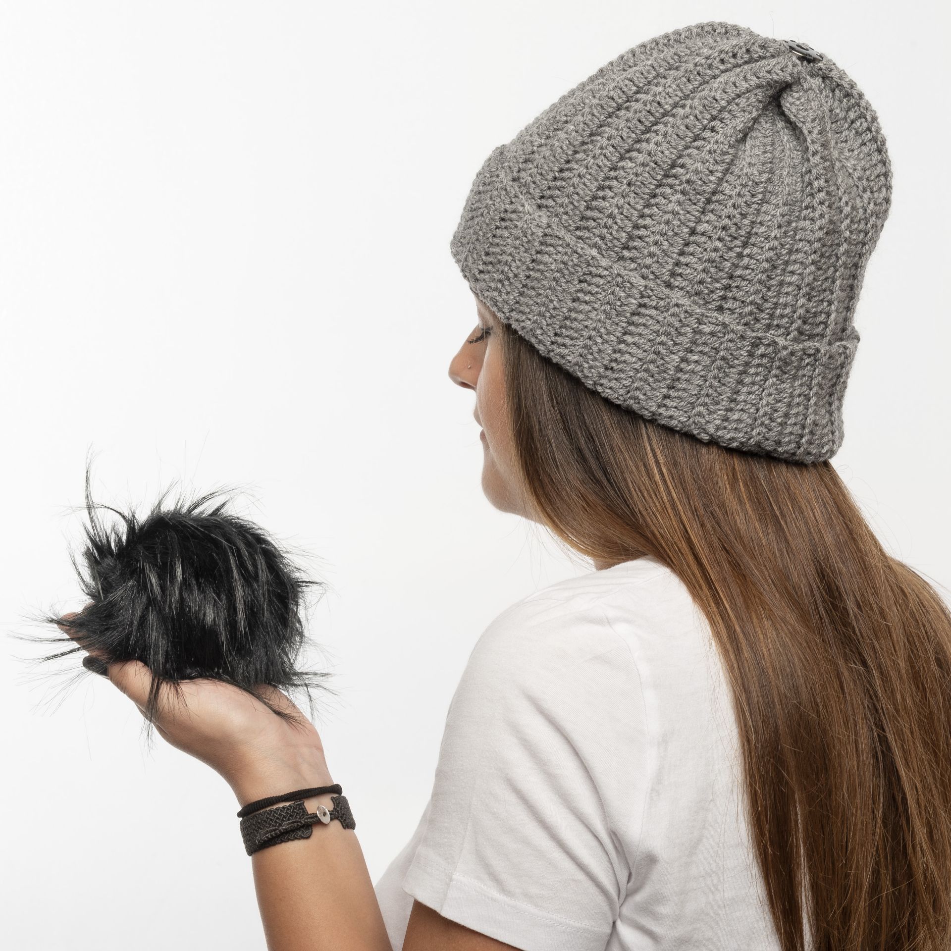 Χειροποίητος πλεκτός σκούφος γκρί