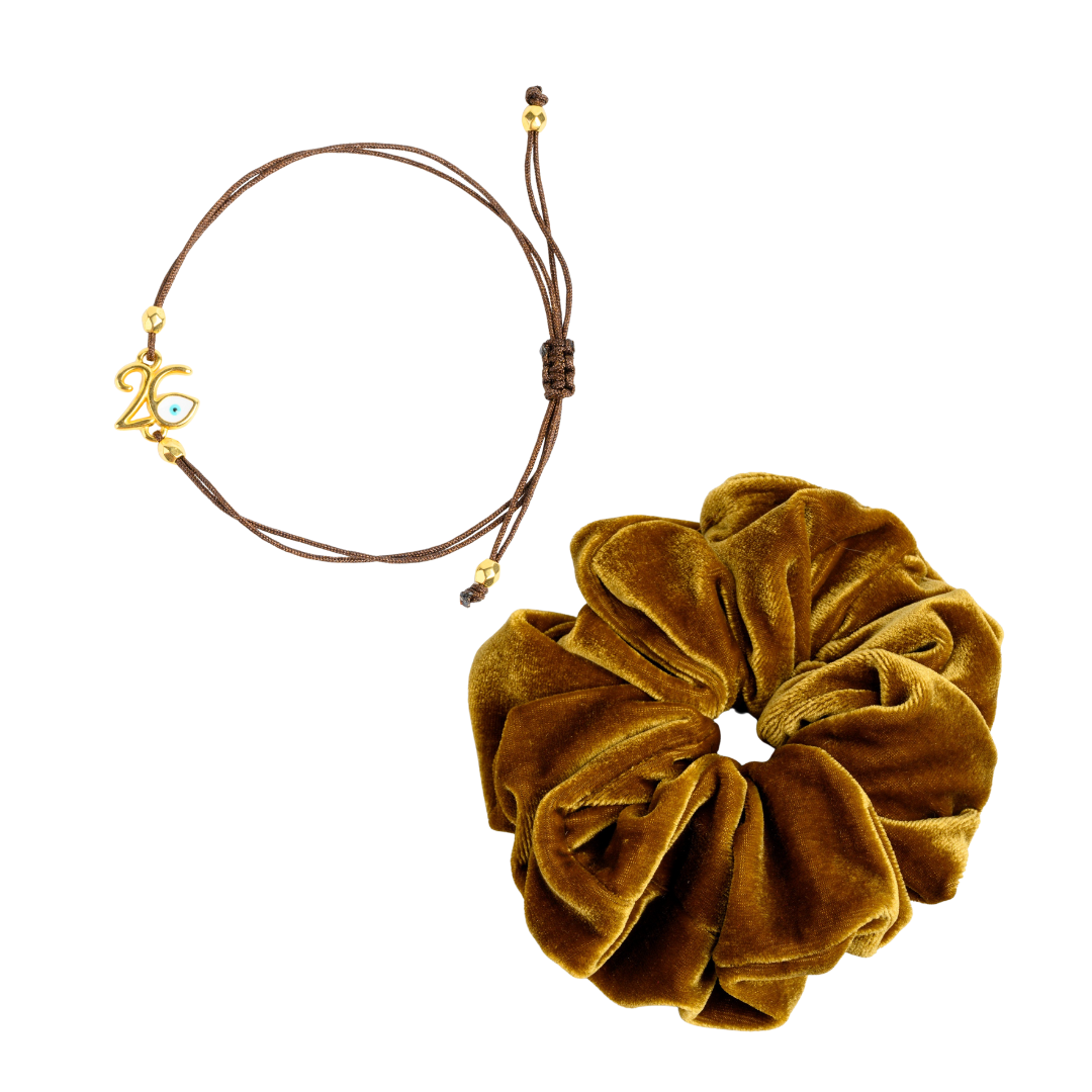 Σετ βραχιόλι και λαστιχάκι μπεζ βελούδο