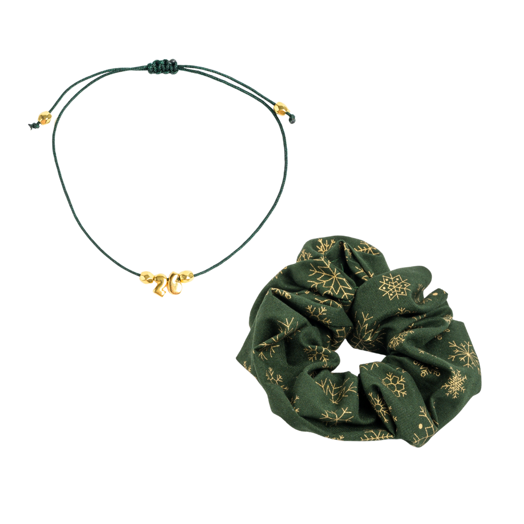 Σετ βραχιόλι και λαστιχάκι πράσινα αστέρια