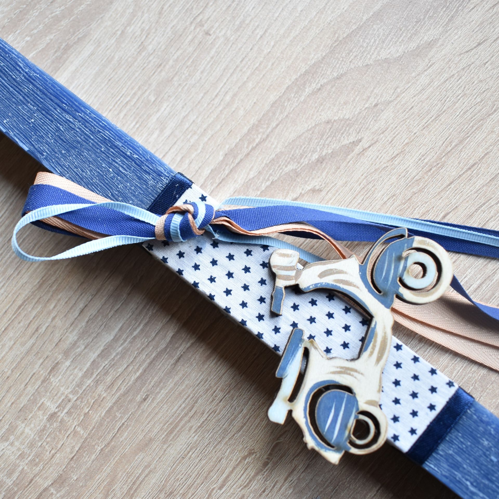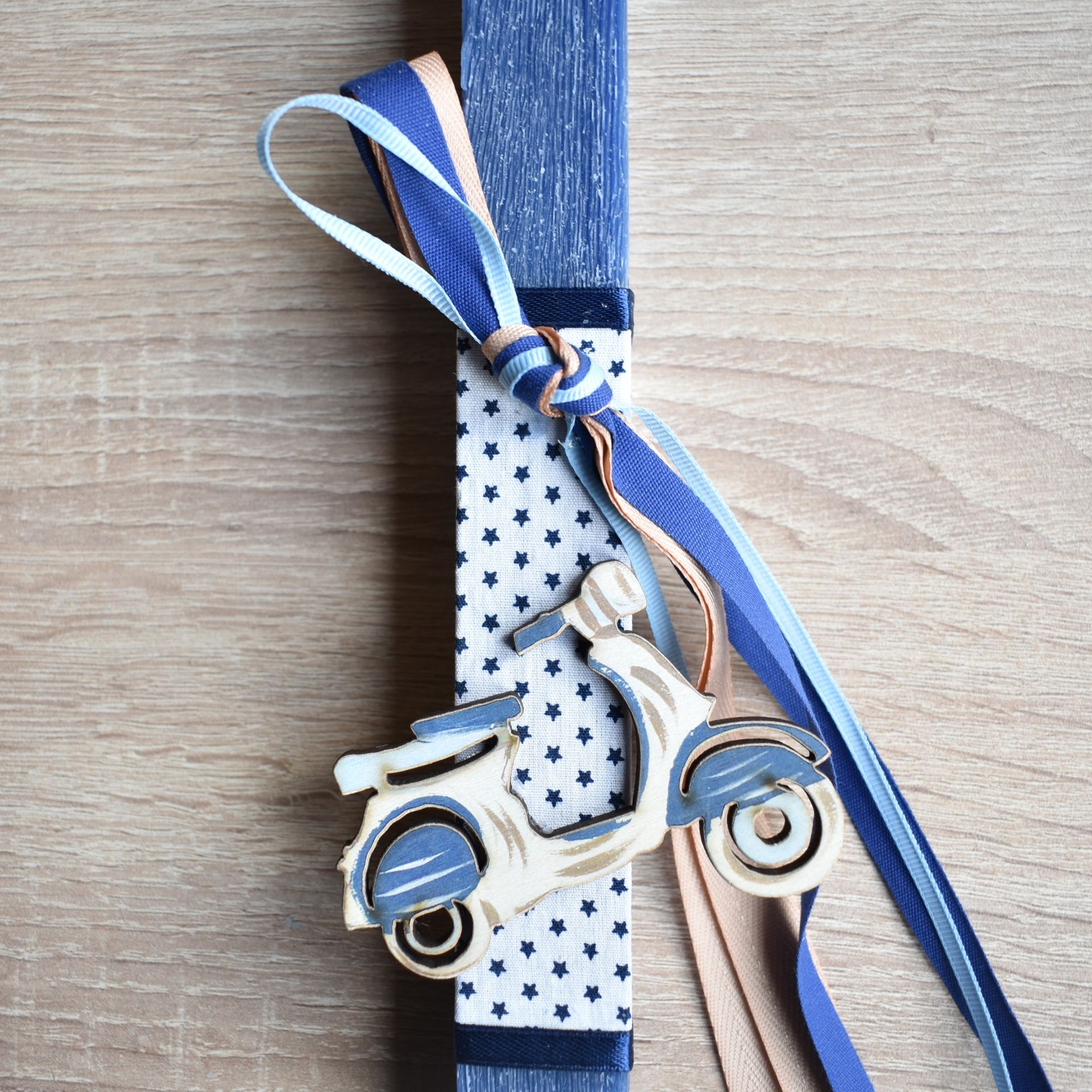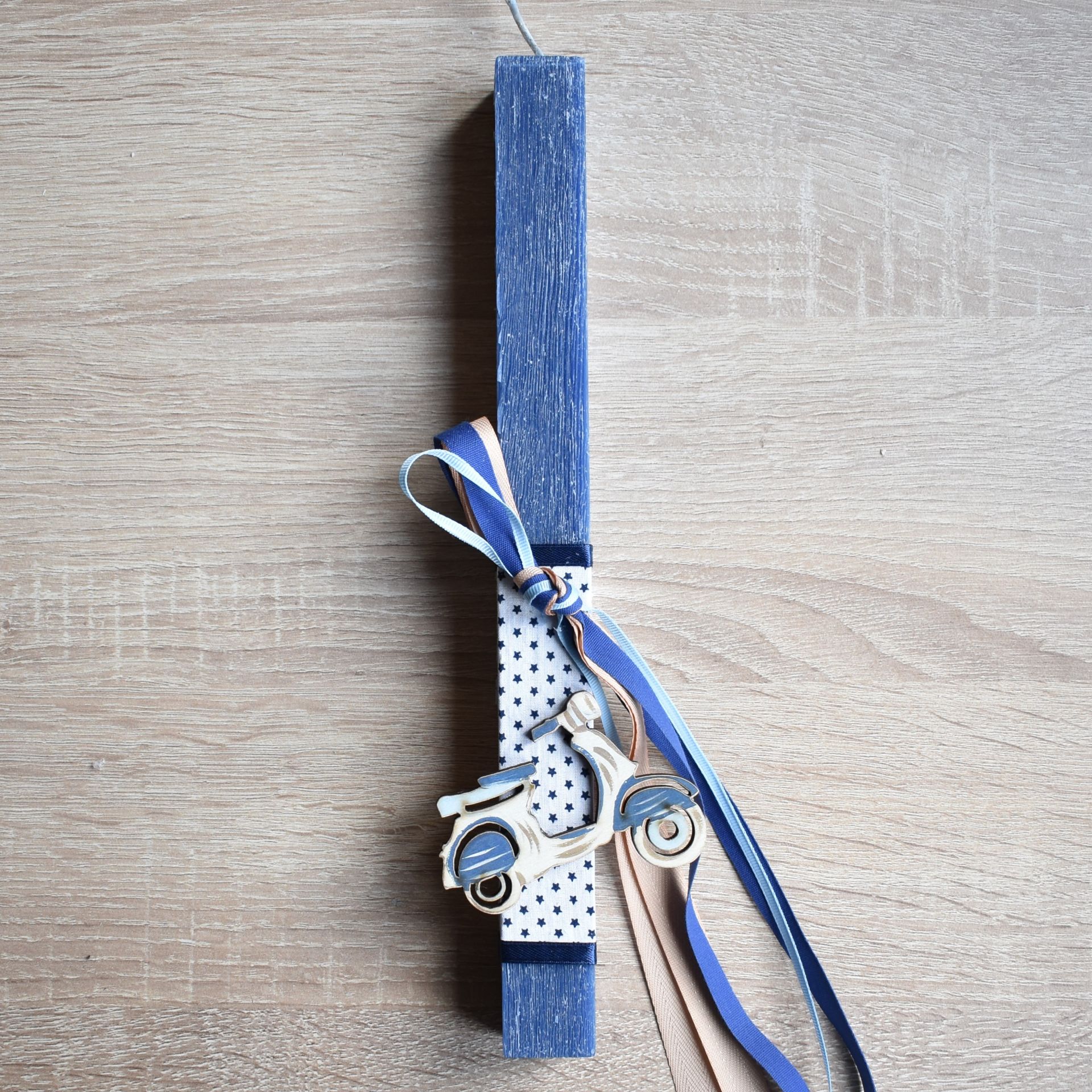 Λαμπάδα αγόρι διακοσμημένη με ξύλινη βέσπα