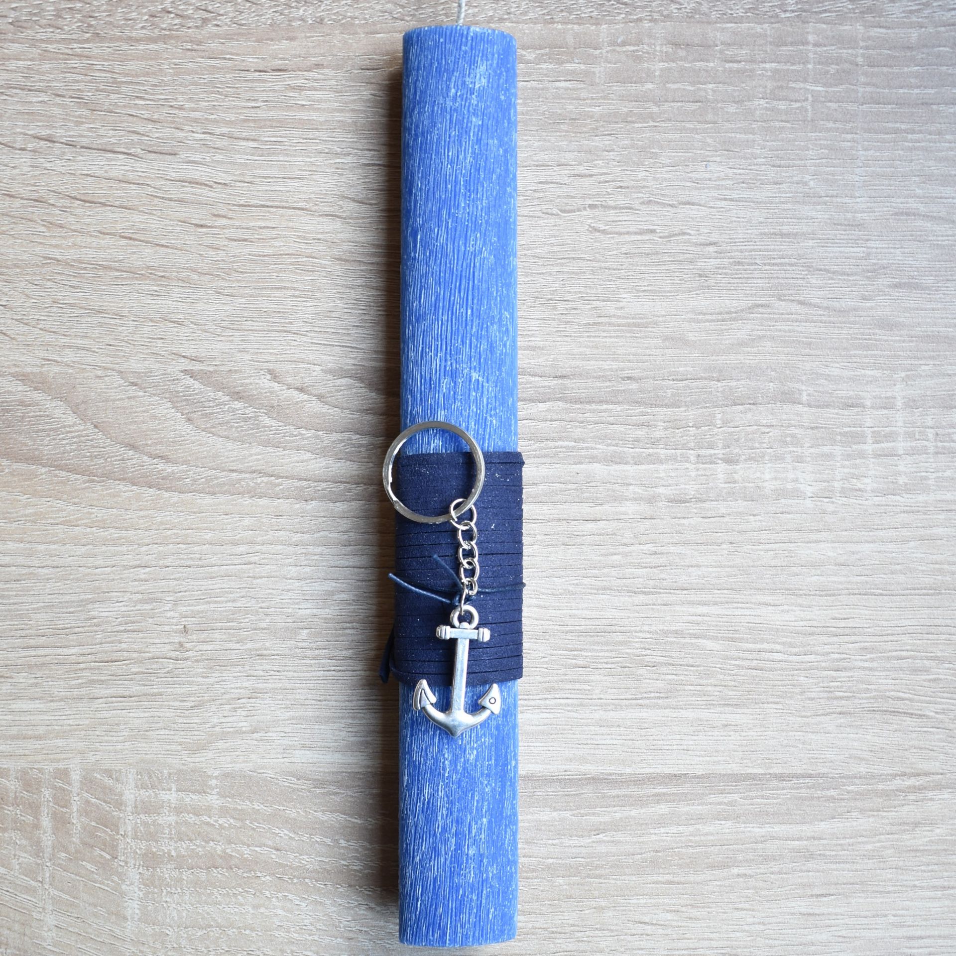 Πασχαλινή λαμπάδα με μεταλλικό μπρελόκ άγκυρα