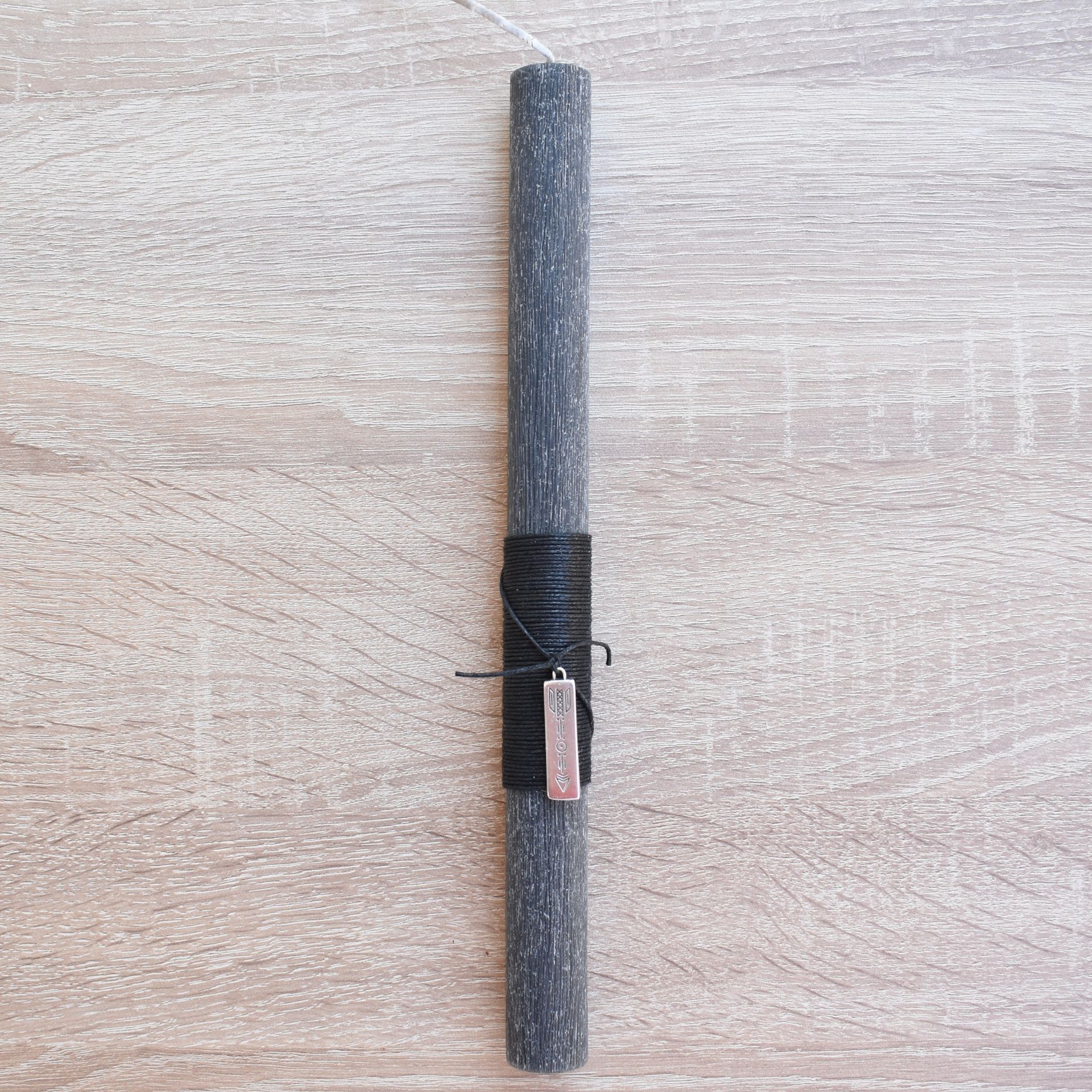 Το μαύρο χρώμα ενισχύει τον αυστηρό και σύγχρονο χαρακτήρα της, καθιστώντας τη λαμπάδα ιδανική επιλογή για άντρες και εφήβους. Η απλότητα του κεριού επιτρέπει στο μεταλλικό στοιχείο να ξεχωρίσει φυσικά, ενώ το συνολικό αποτέλεσμα διατηρεί τον πασχαλινό συμβολισμό με μοντέρνα και ανδρική αισθητική.