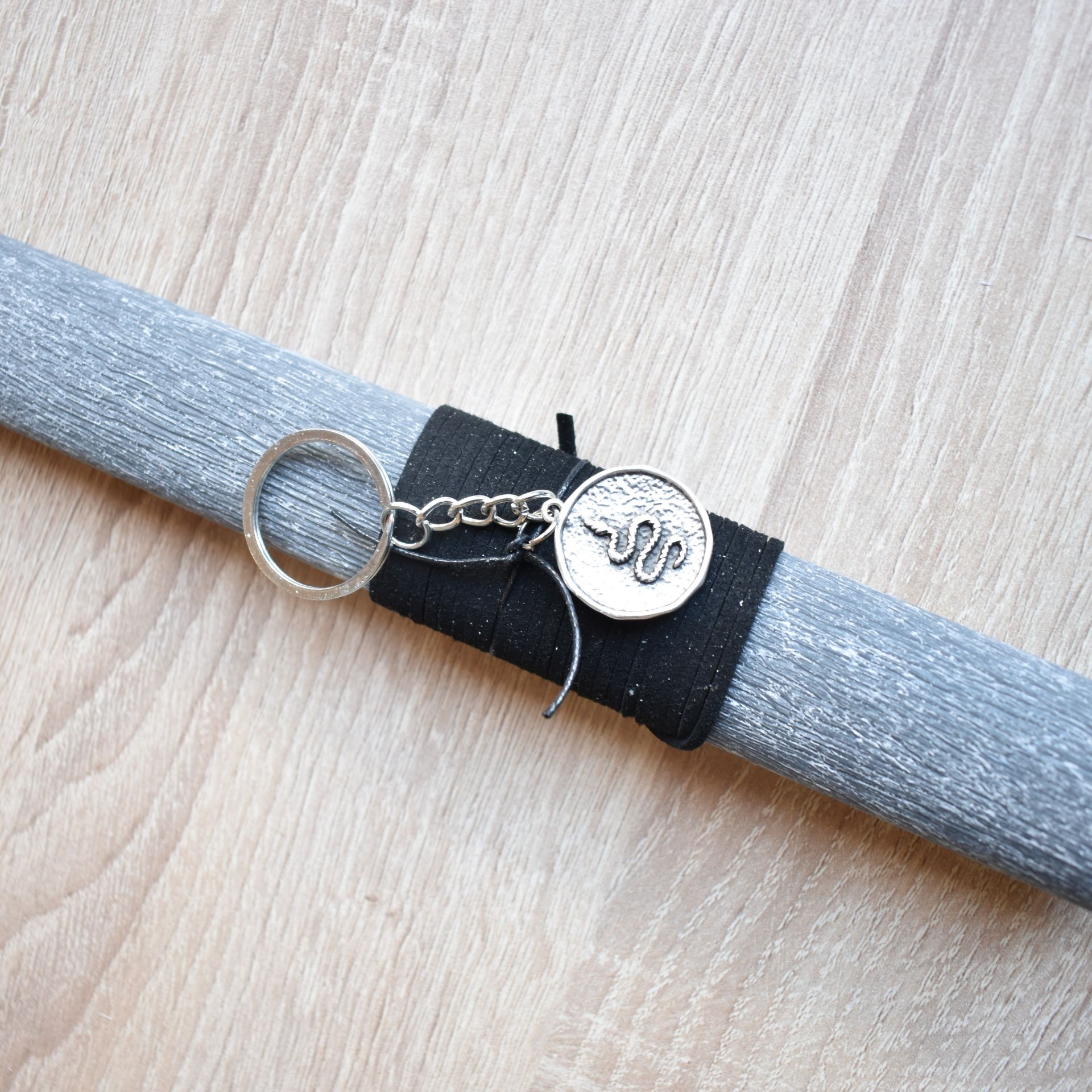 Χειροποίητη μαύρη πασχαλινή λαμπάδα με μεταλλικό μπρελόκ φίδι, εμπνευσμένη από τον συμβολισμό της μεταμόρφωσης, της δύναμης και της εσωτερικής ενέργειας. Το φίδι αποδίδεται μέσα από ένα μεταλλικό μπρελόκ που λειτουργεί ως δυναμικό στοιχείο ταυτότητας, προσθέτοντας χαρακτήρα στη λαμπάδα χωρίς να αλλοιώνει τον λιτό σχεδιασμό της.