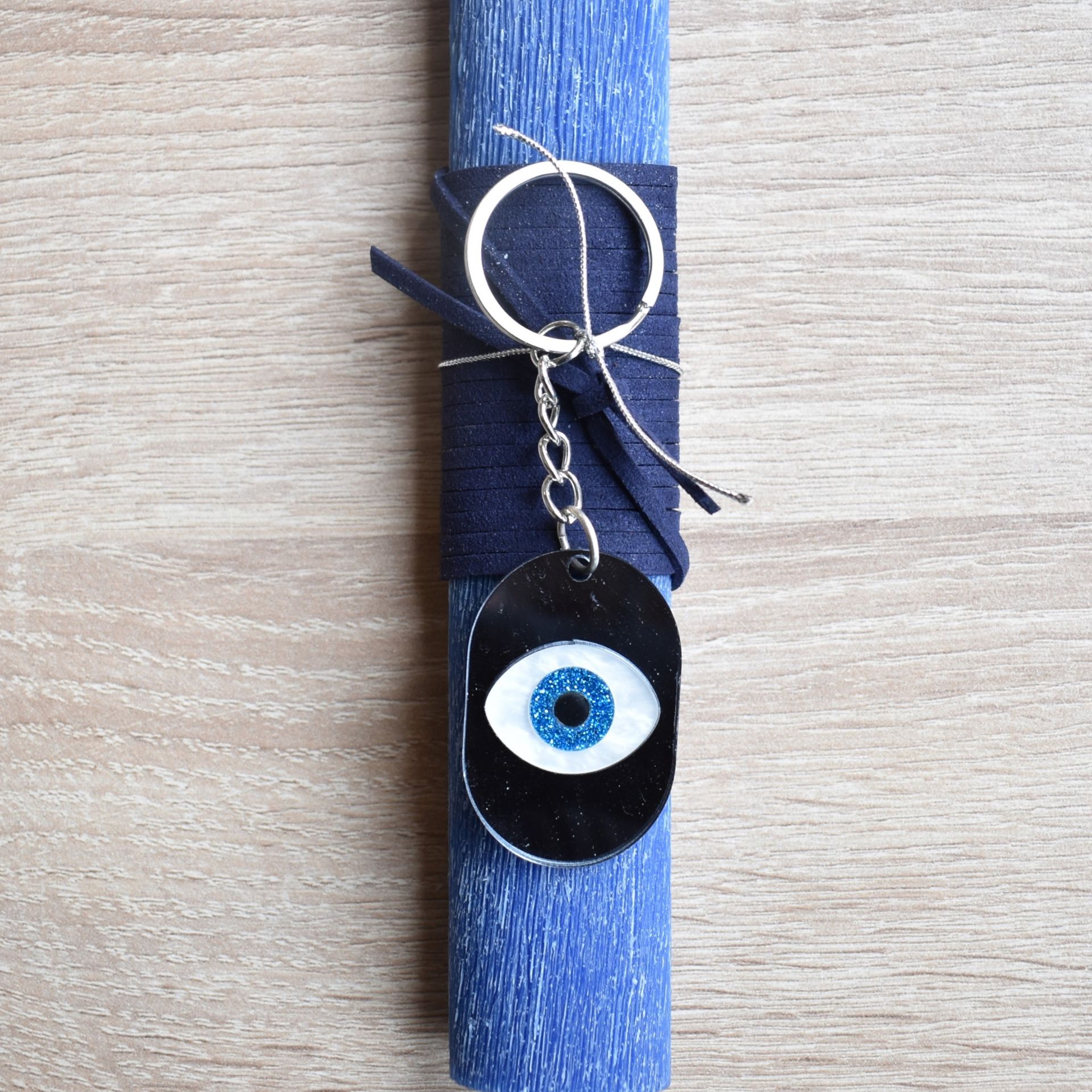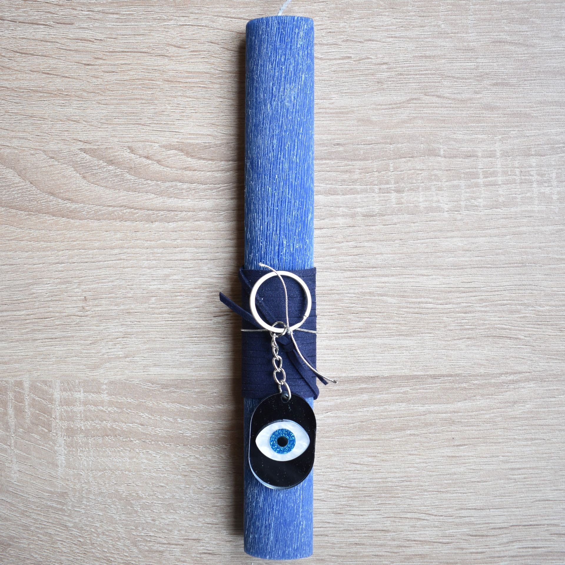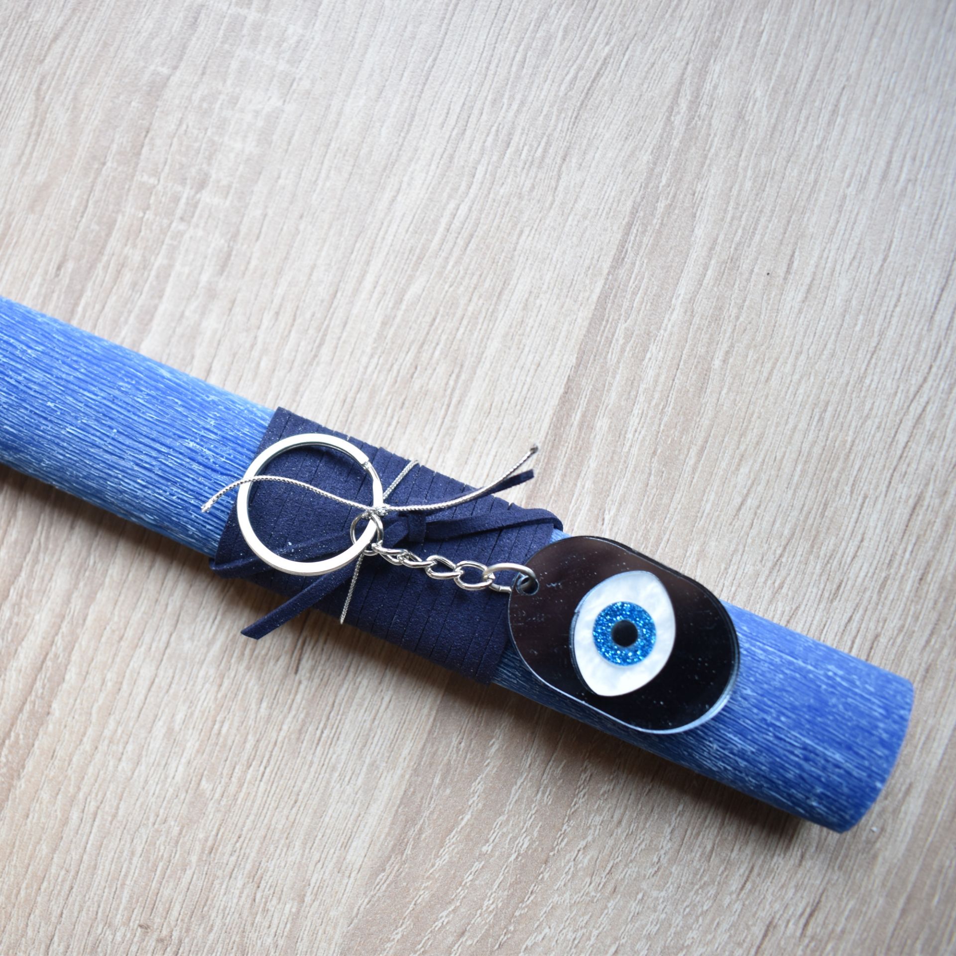 Πασχαλινή λαμπάδα με μπρελόκ μάτι μπλε καθρέπτης
