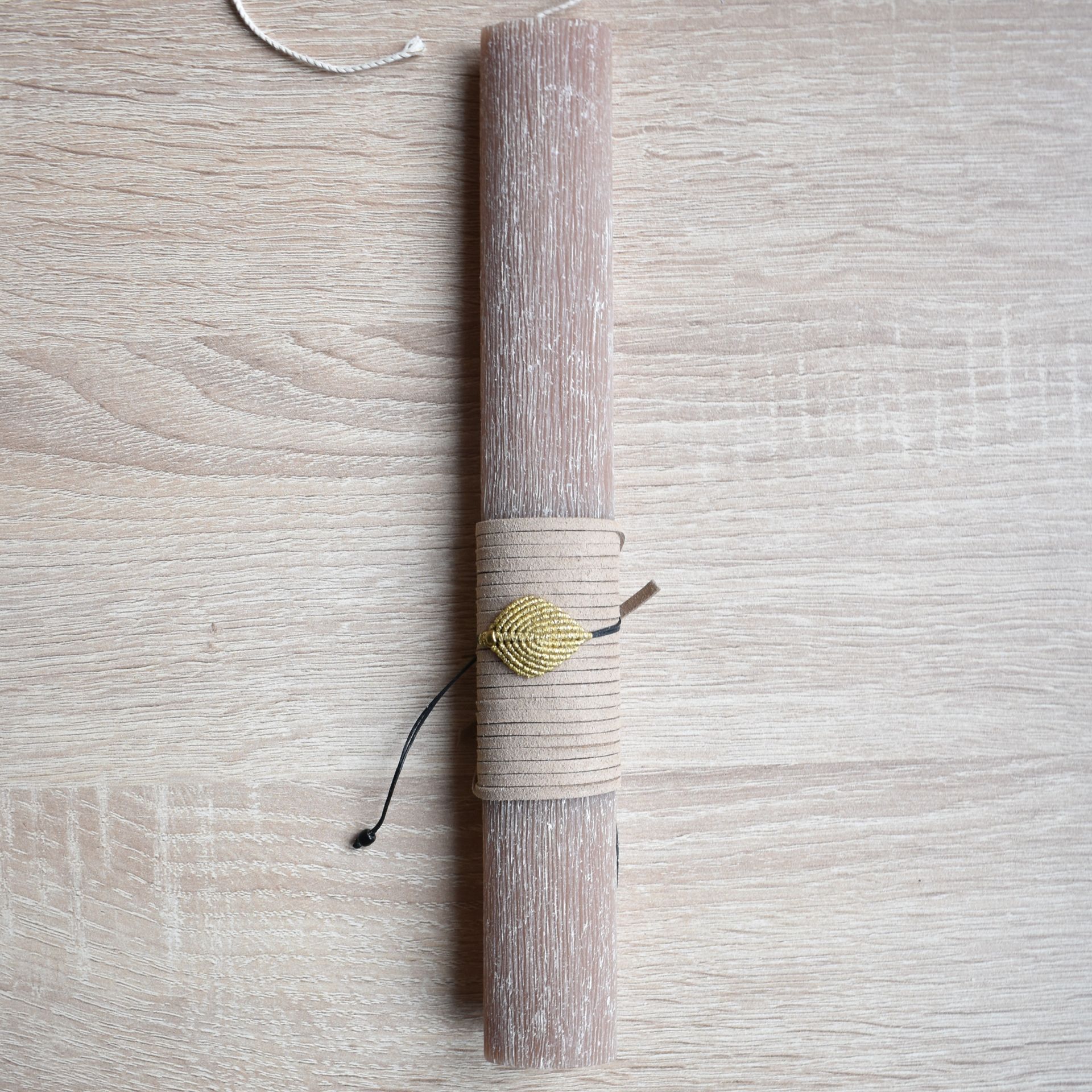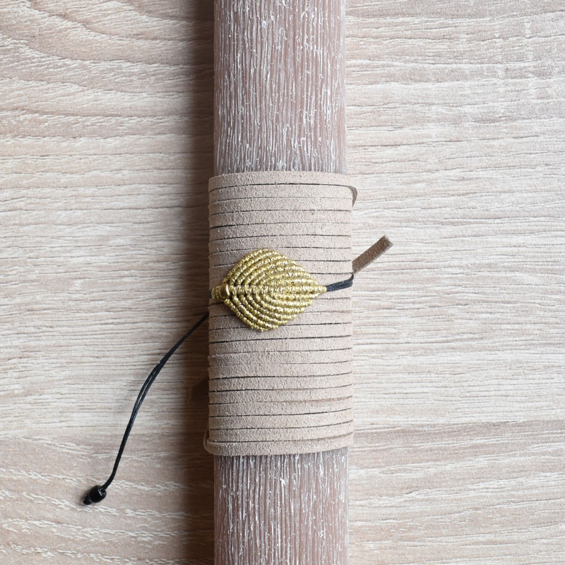 Πασχαλινή λαμπάδα με βραχιόλι μακραμέ φύλλο χρυσό