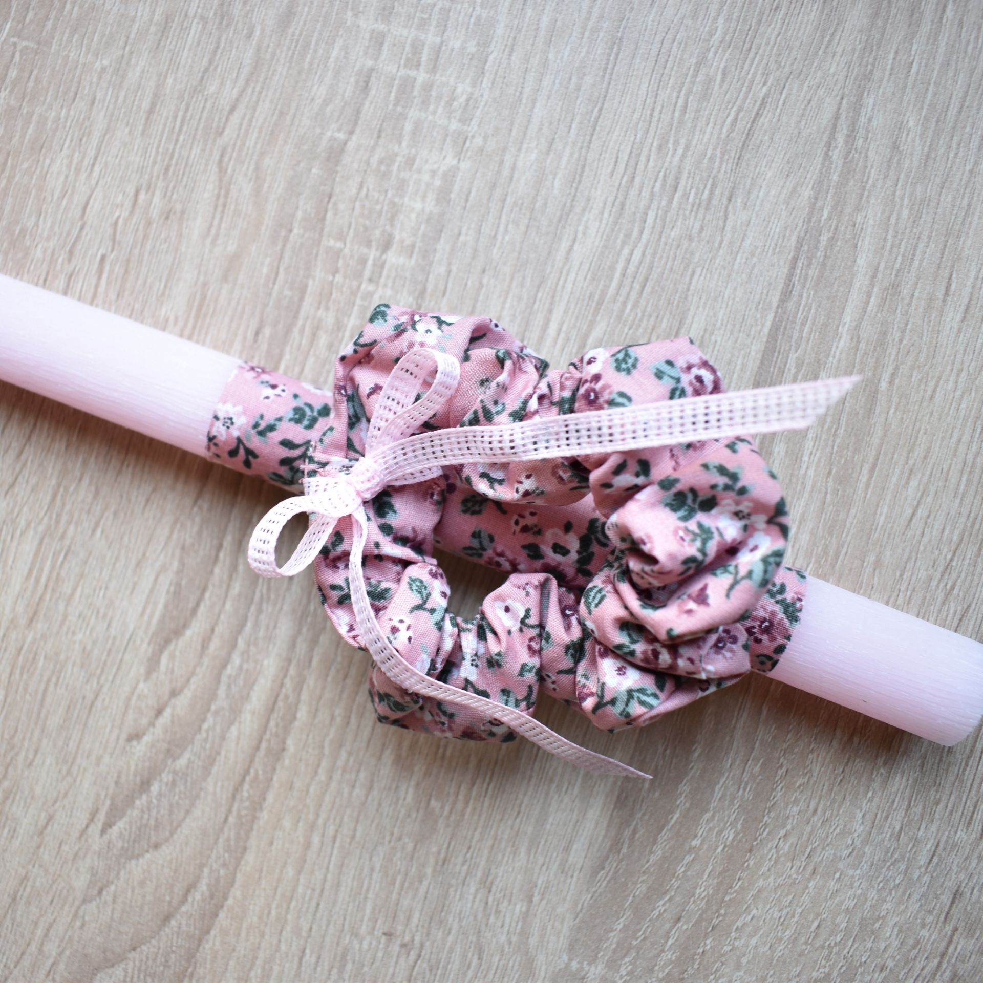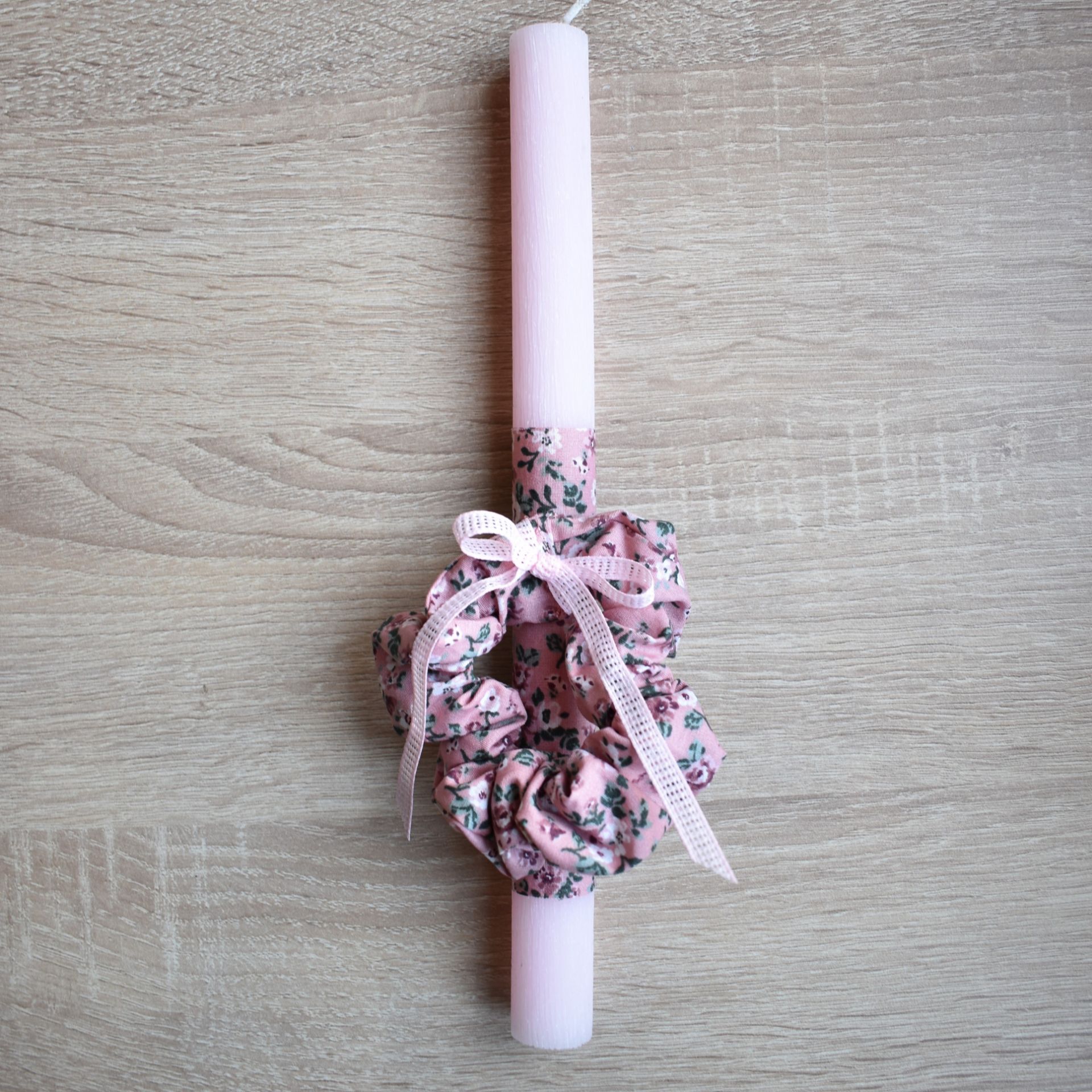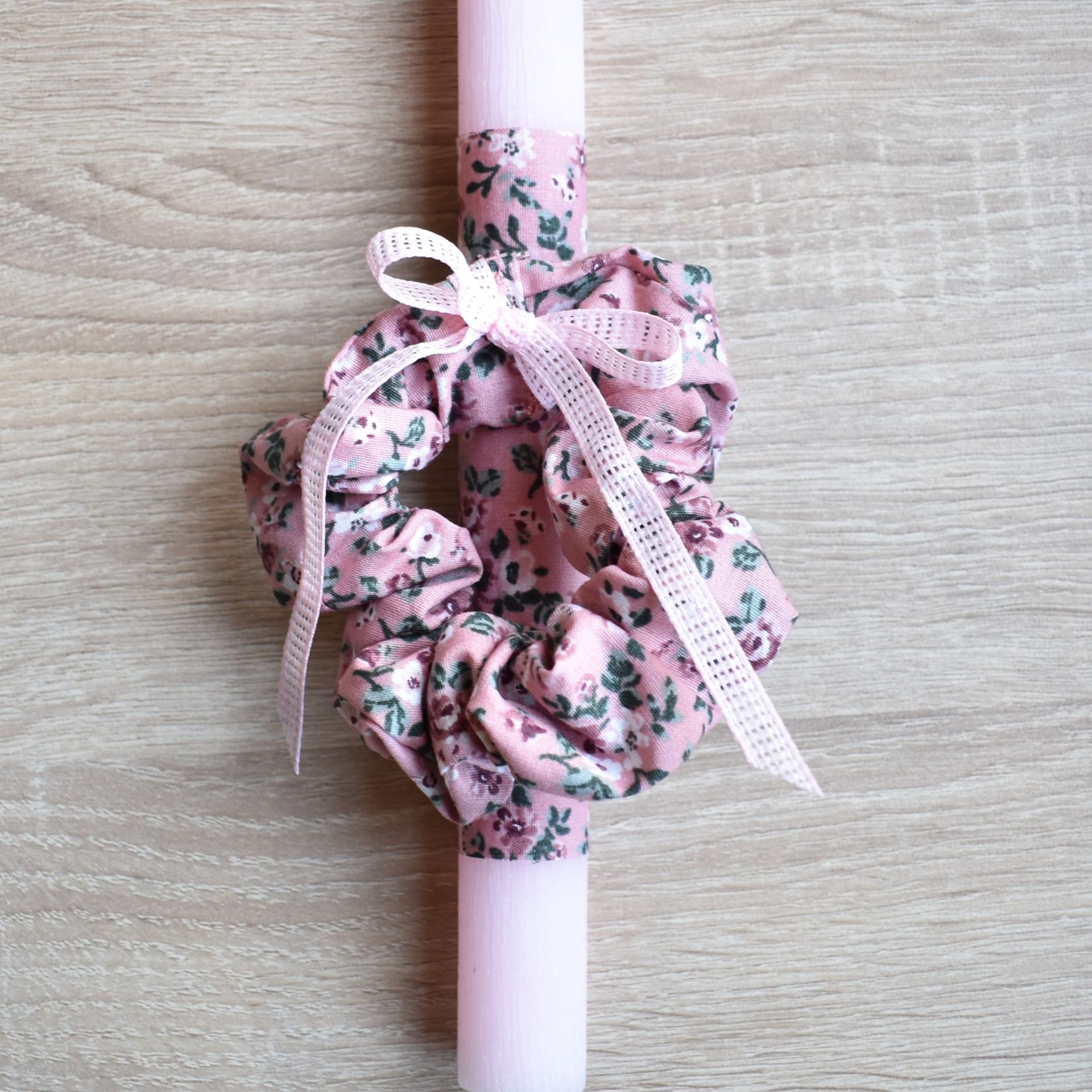 Η συγκεκριμένη πασχαλινή λαμπάδα είναι κατάλληλη τόσο για γυναίκες όσο και για κορίτσια στην εφηβεία. Ο συνδυασμός του κεριού με το ροζ scrunchie δημιουργεί ένα αποτέλεσμα απλό και ευέλικτο, χωρίς ηλικιακούς περιορισμούς.