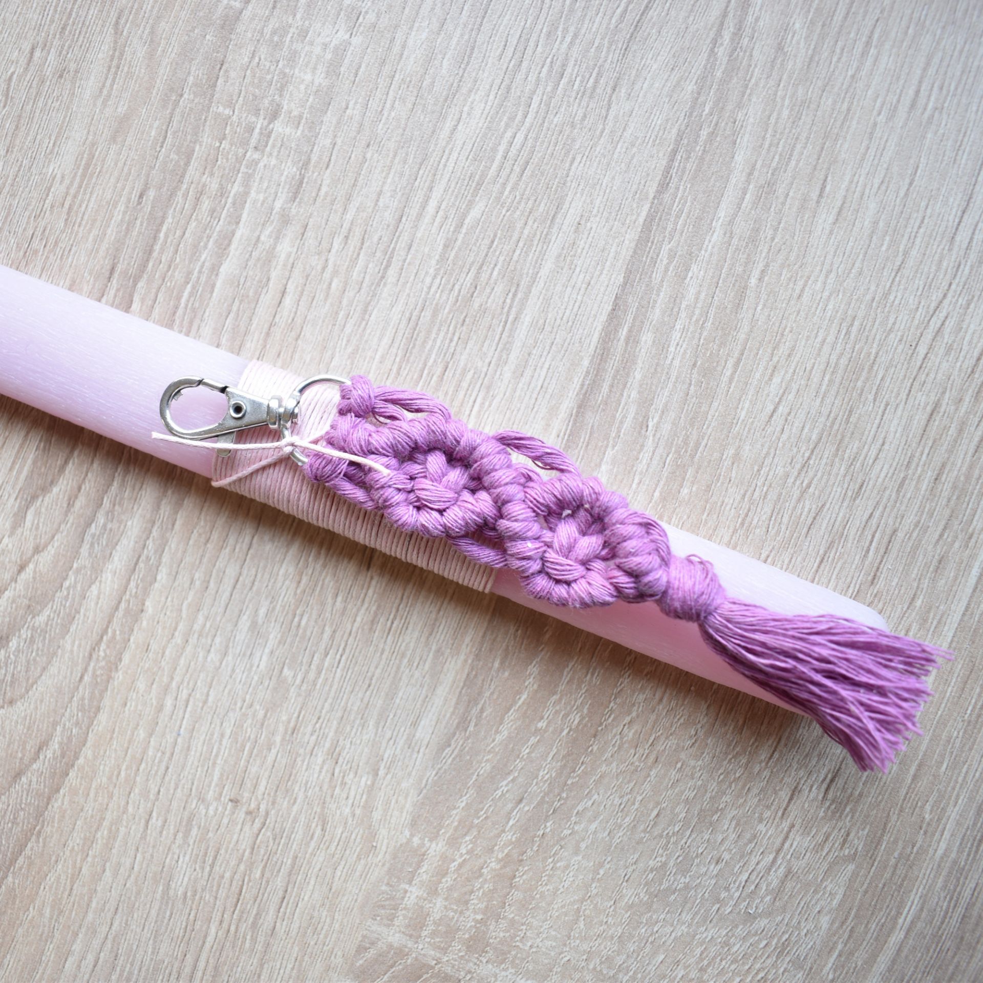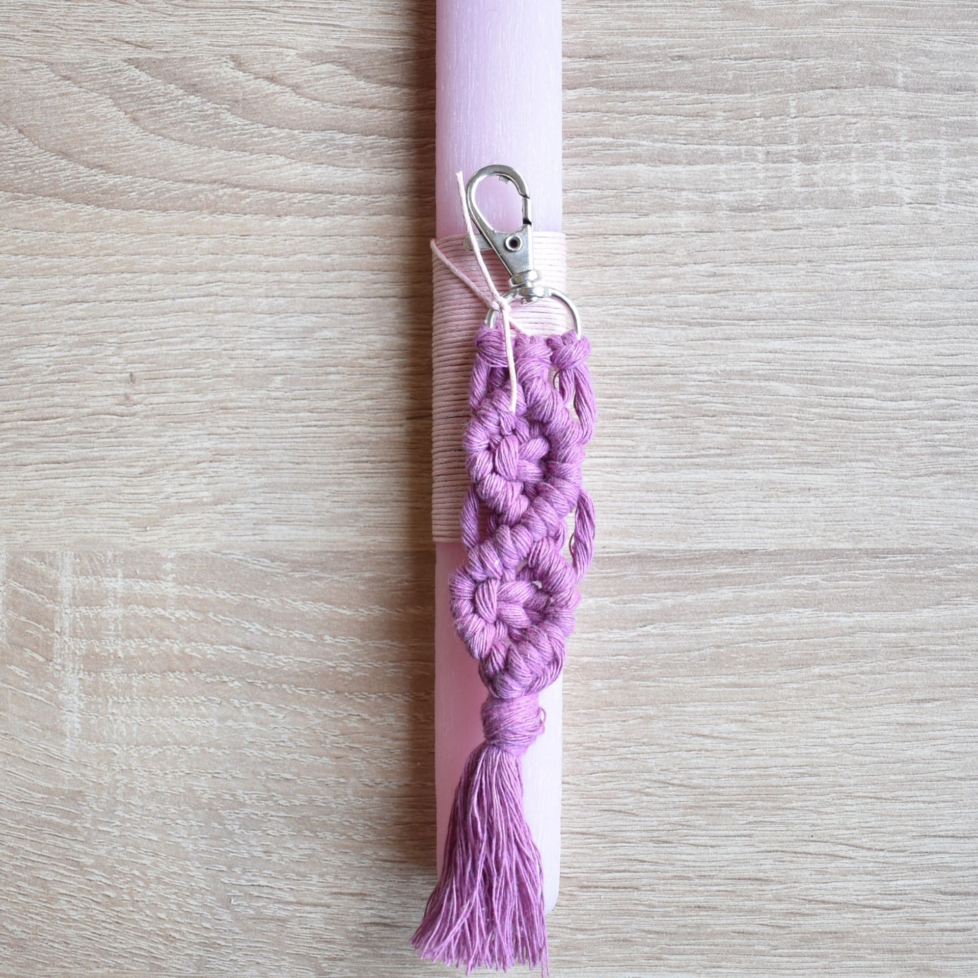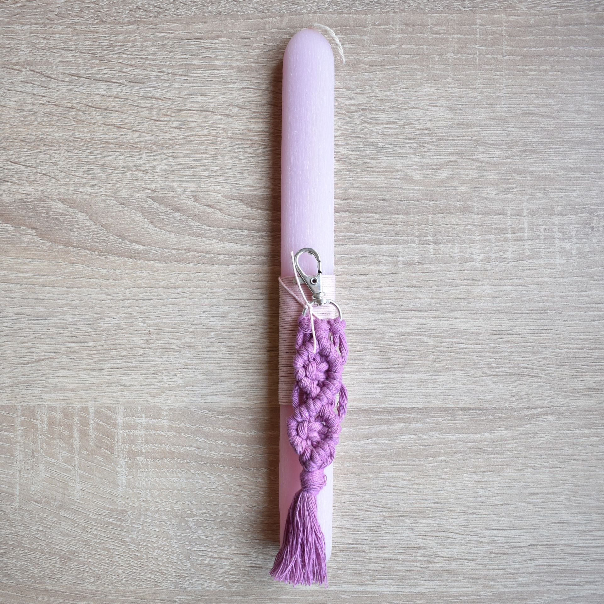 Πασχαλινή λαμπάδα με μπρελόκ μακραμέ ροζ