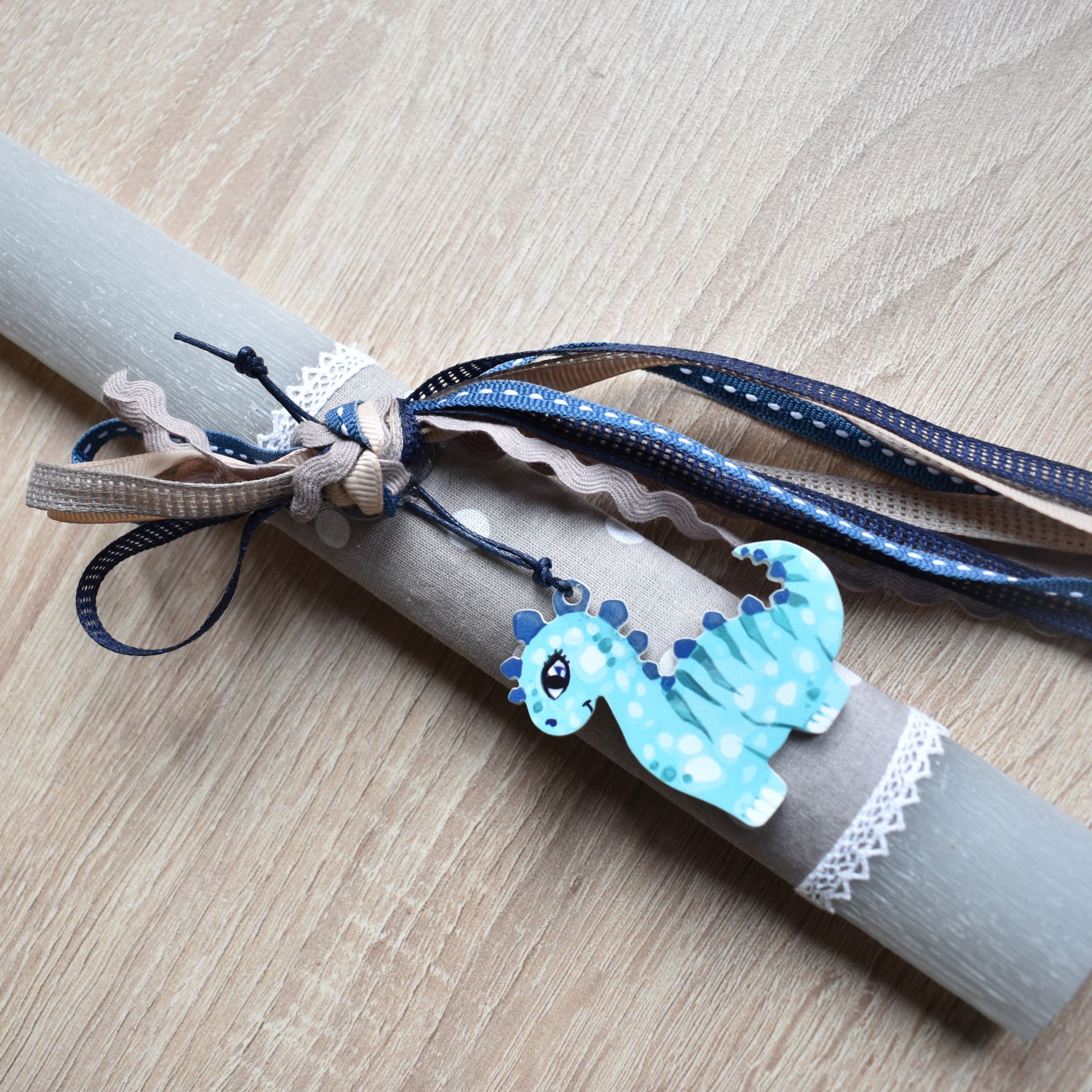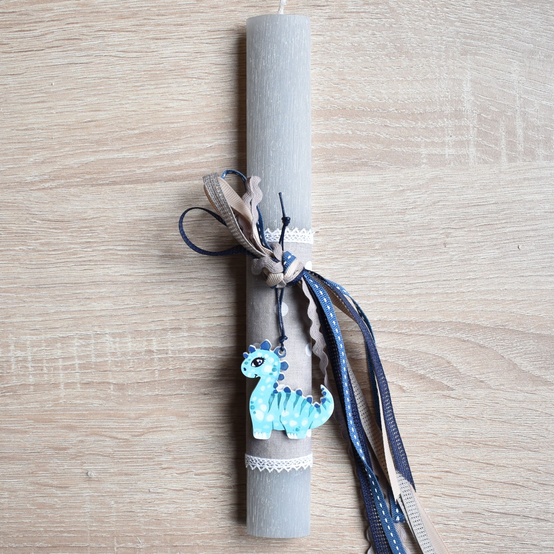 Η παιδική πασχαλινή λαμπάδα με δεινόσαυρο απευθύνεται σε αγόρια που αγαπούν τα ζωάκια αλλά και τα πιο σύγχρονα σχέδια. Ο δεινόσαυρος παραμένει ένα αγαπημένο θέμα, ενώ το plexi glass προσθέτει μια πιο μοντέρνα αισθητική.