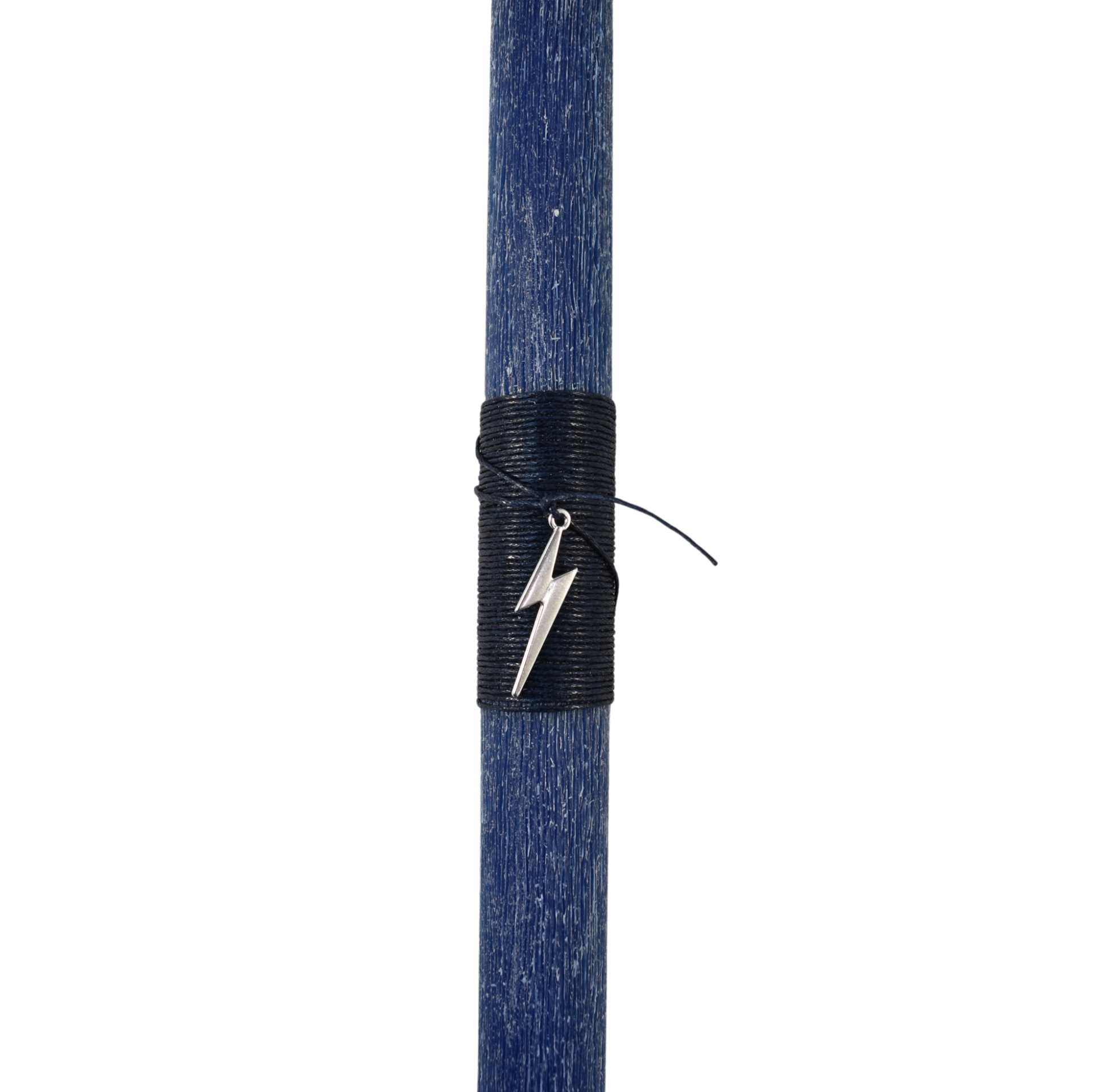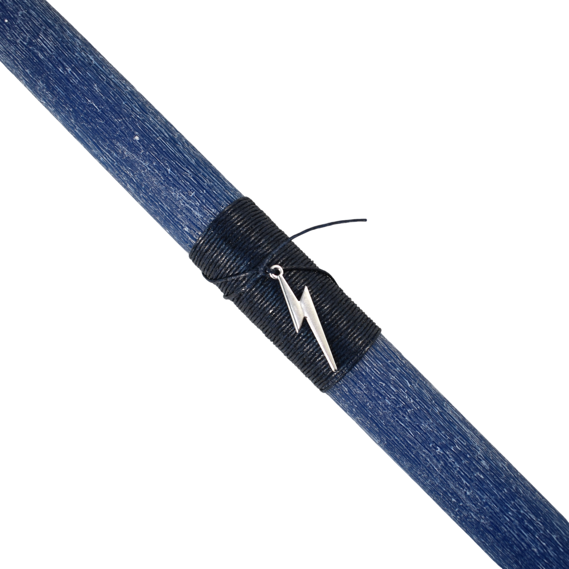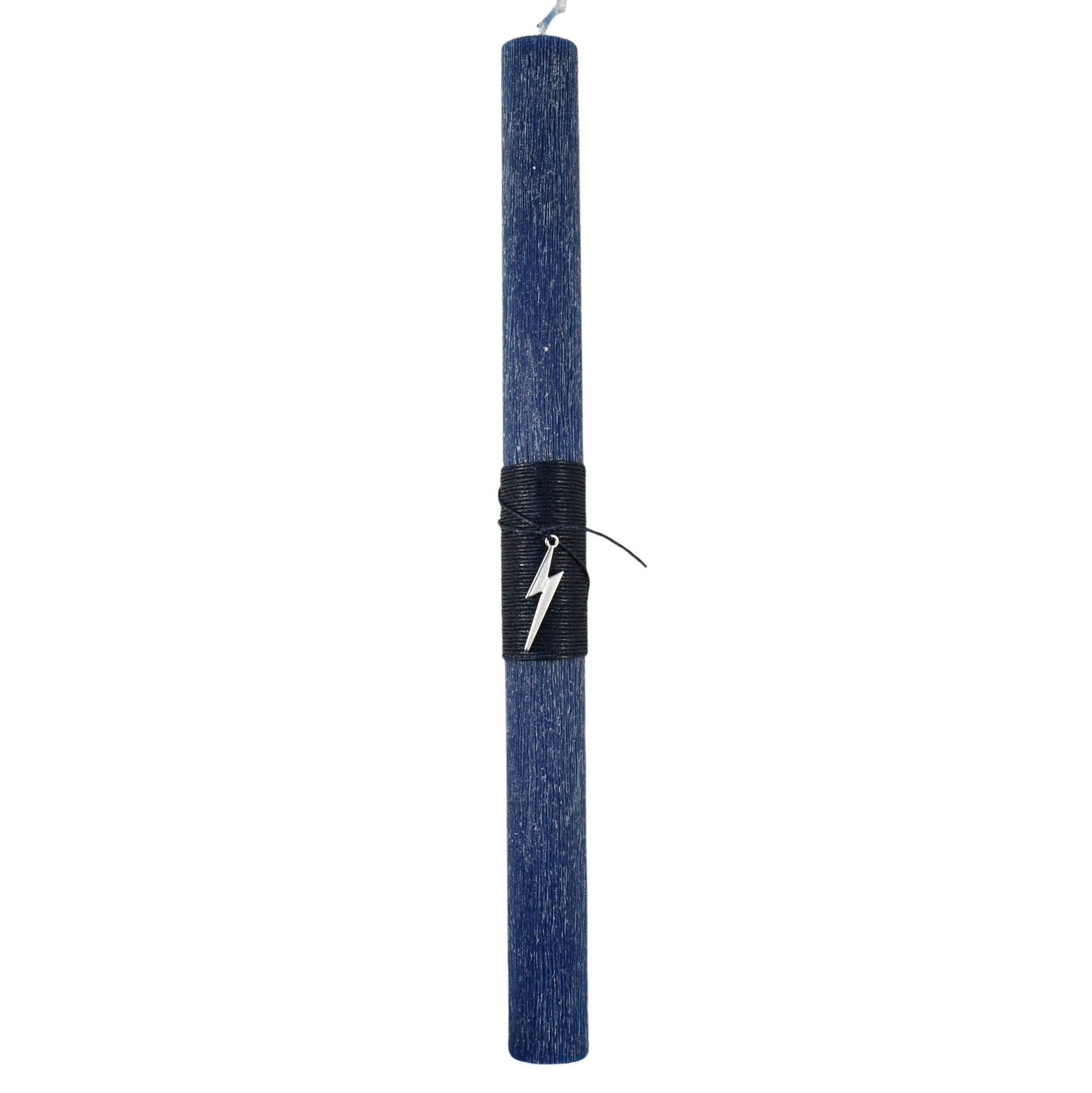 Χειροποίητη μπλε πασχαλινή λαμπάδα με μεταλλικό κεραυνό, εμπνευσμένη από την έννοια της ενέργειας, της αποφασιστικότητας και της άμεσης δράσης. Ο κεραυνός αποδίδεται ως καθαρό μεταλλικό στοιχείο που προσθέτει ένταση και χαρακτήρα στη λαμπάδα, χωρίς να επιβαρύνει τον ισορροπημένο και λιτό σχεδιασμό της.