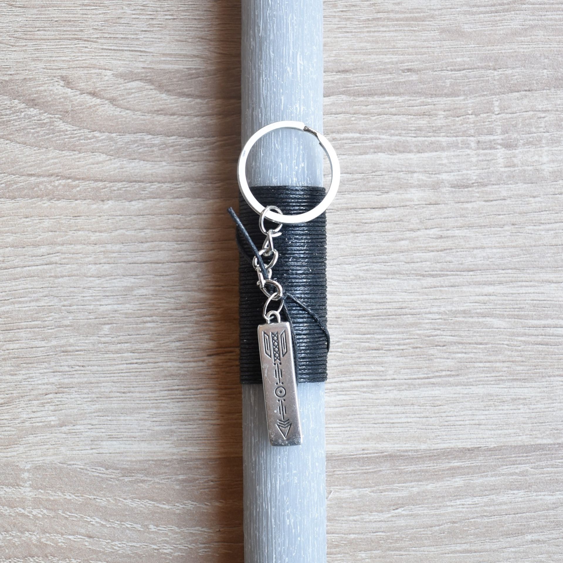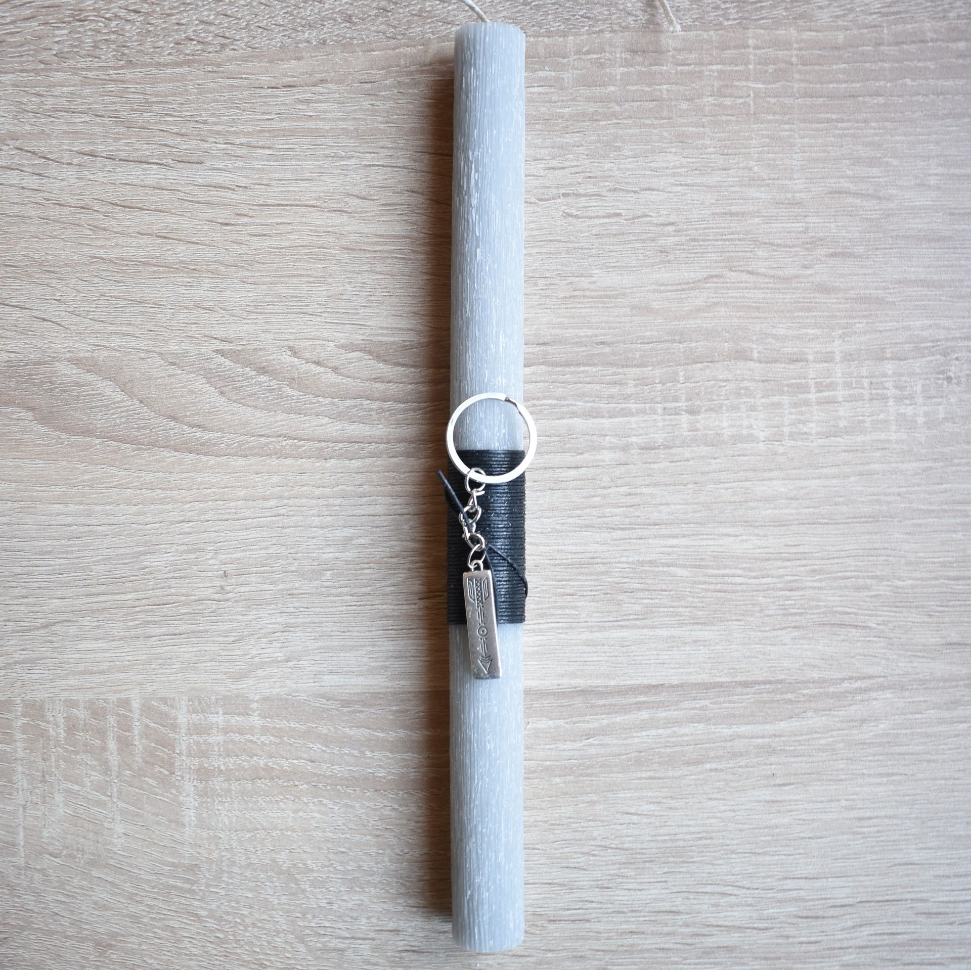Πασχαλινή λαμπάδα με μπρελόκ με μεταλλικό βέλος