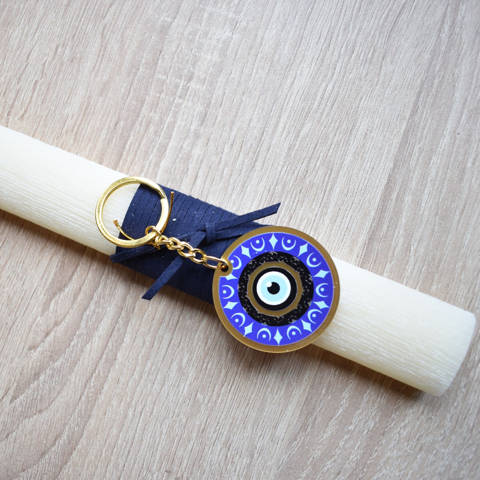 Πασχαλινή λαμπάδα με μπρελόκ μάτι μπλε
