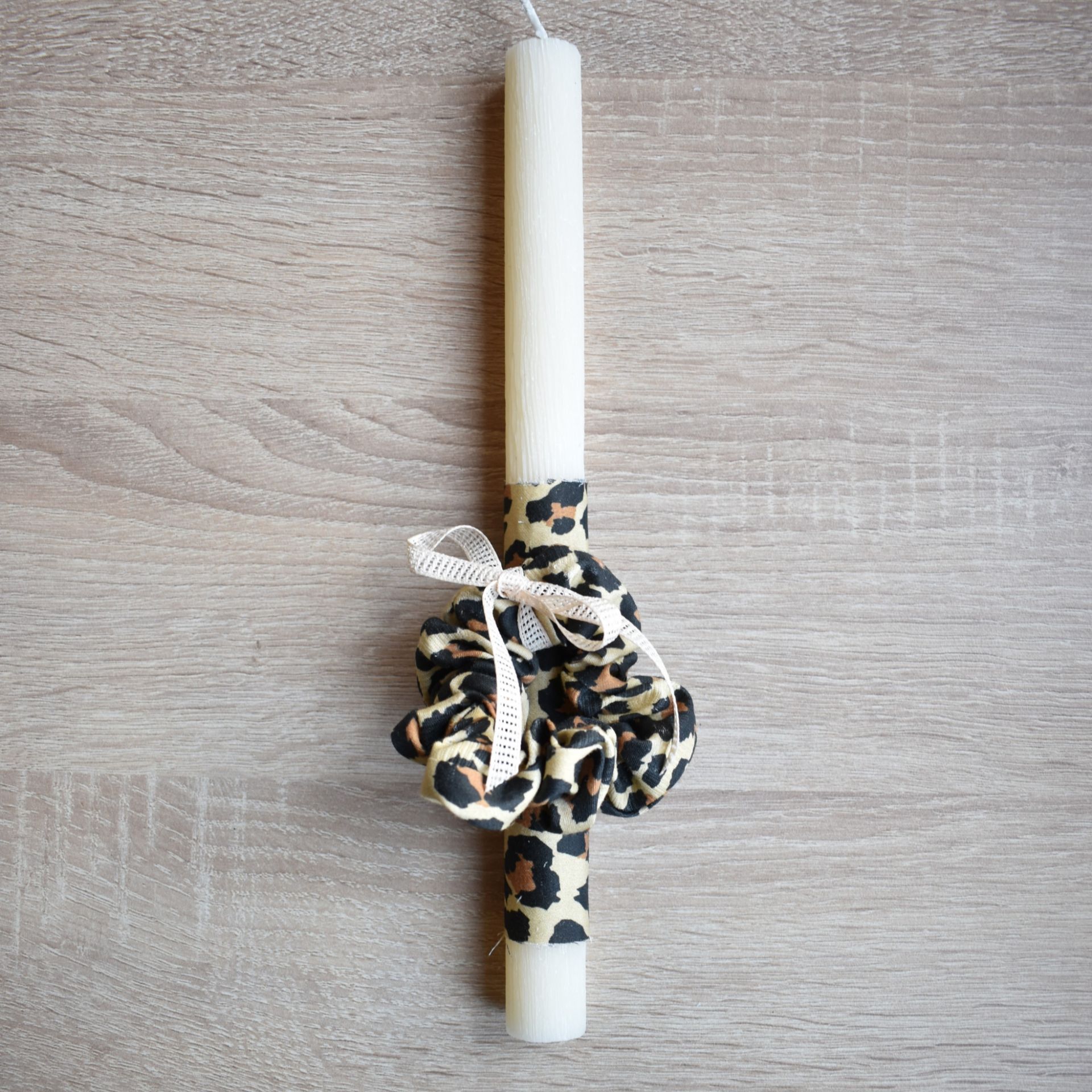 Η συγκεκριμένη πασχαλινή λαμπάδα είναι κατάλληλη τόσο για γυναίκες όσο και για κορίτσια στην εφηβεία. Ο συνδυασμός του ουδέτερου κεριού με το animal print αξεσουάρ δημιουργεί ένα ισορροπημένο αποτέλεσμα που απευθύνεται σε διαφορετικά γούστα και ηλικίες.