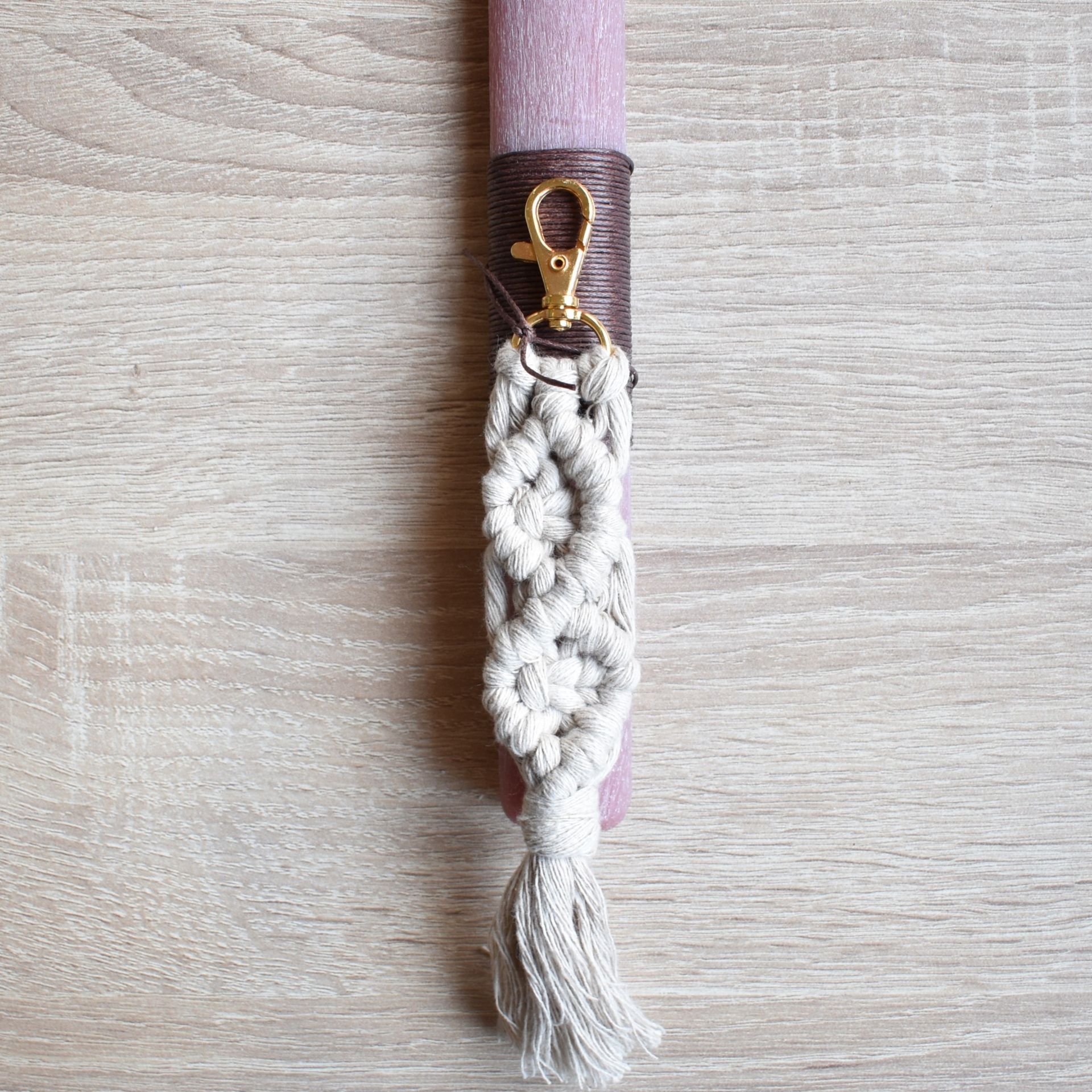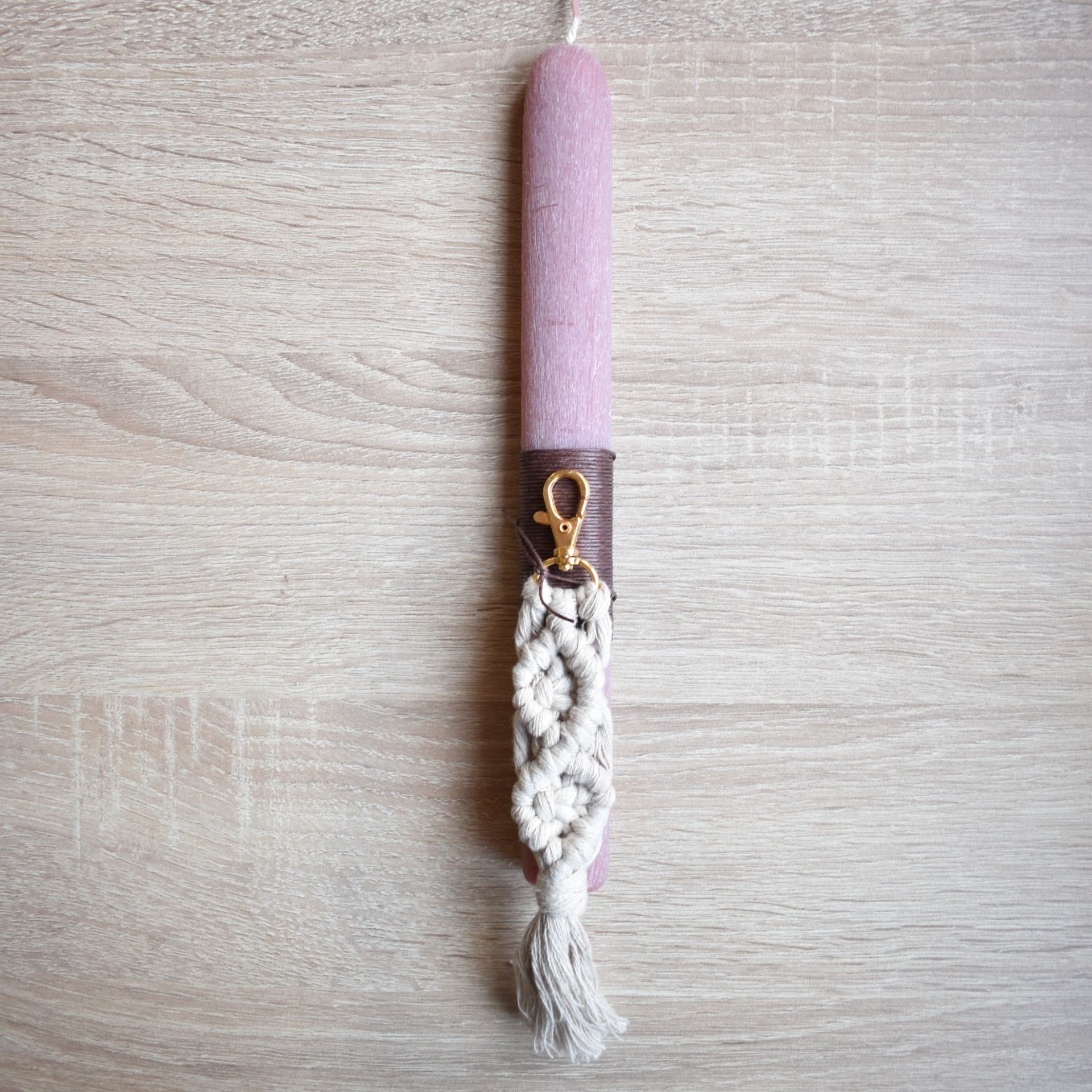 Πασχαλινή λαμπάδα με μπρελόκ μακραμέ μπεζ