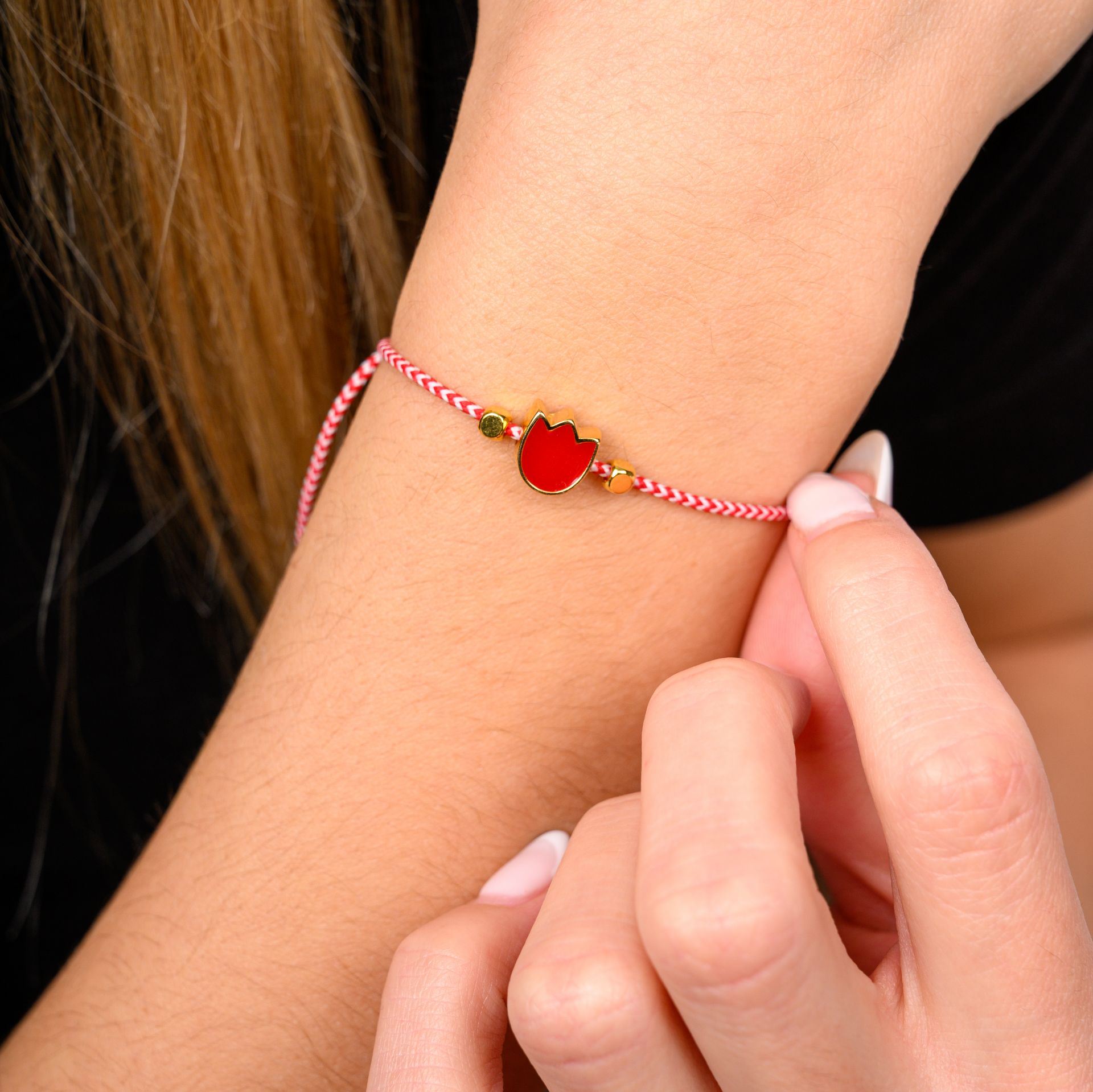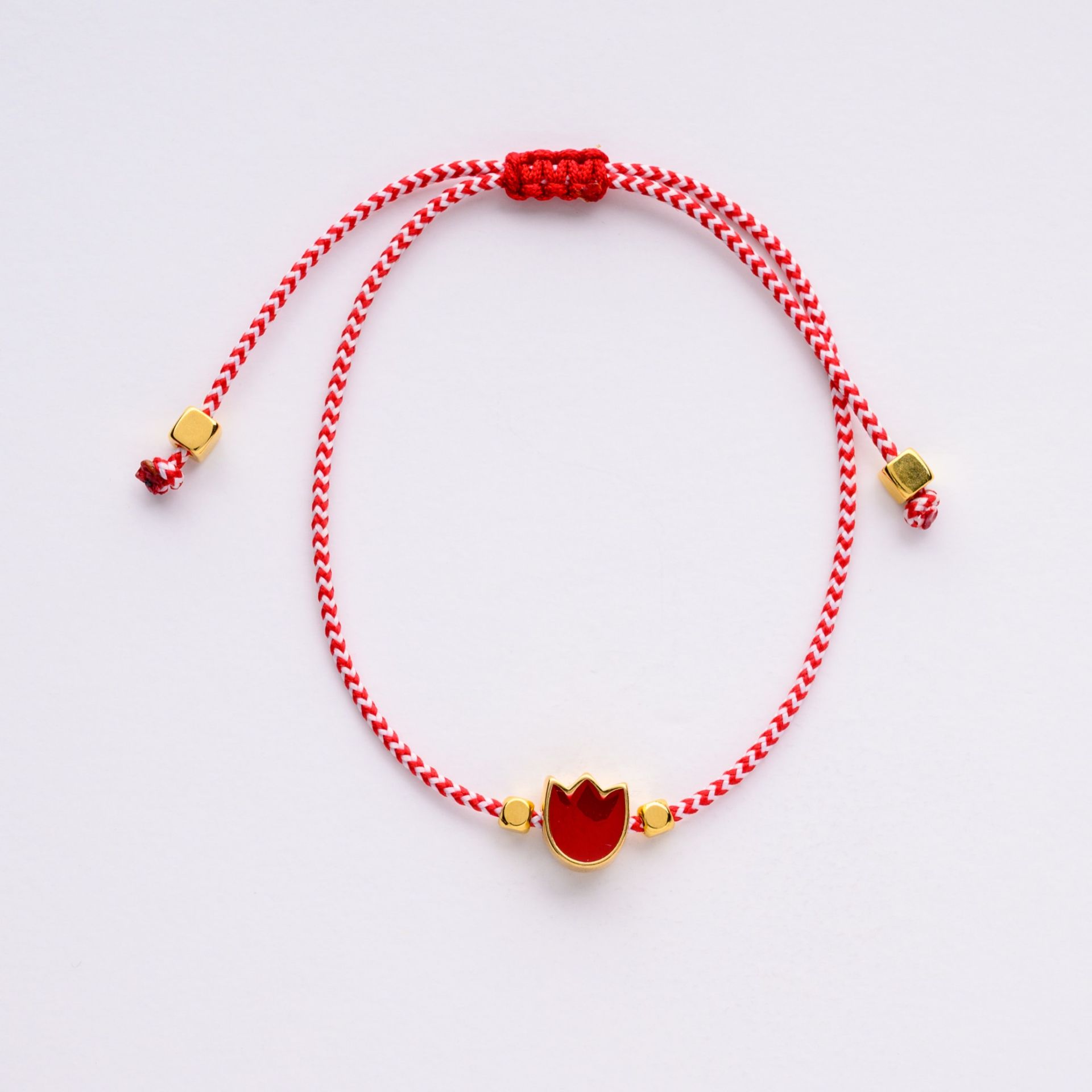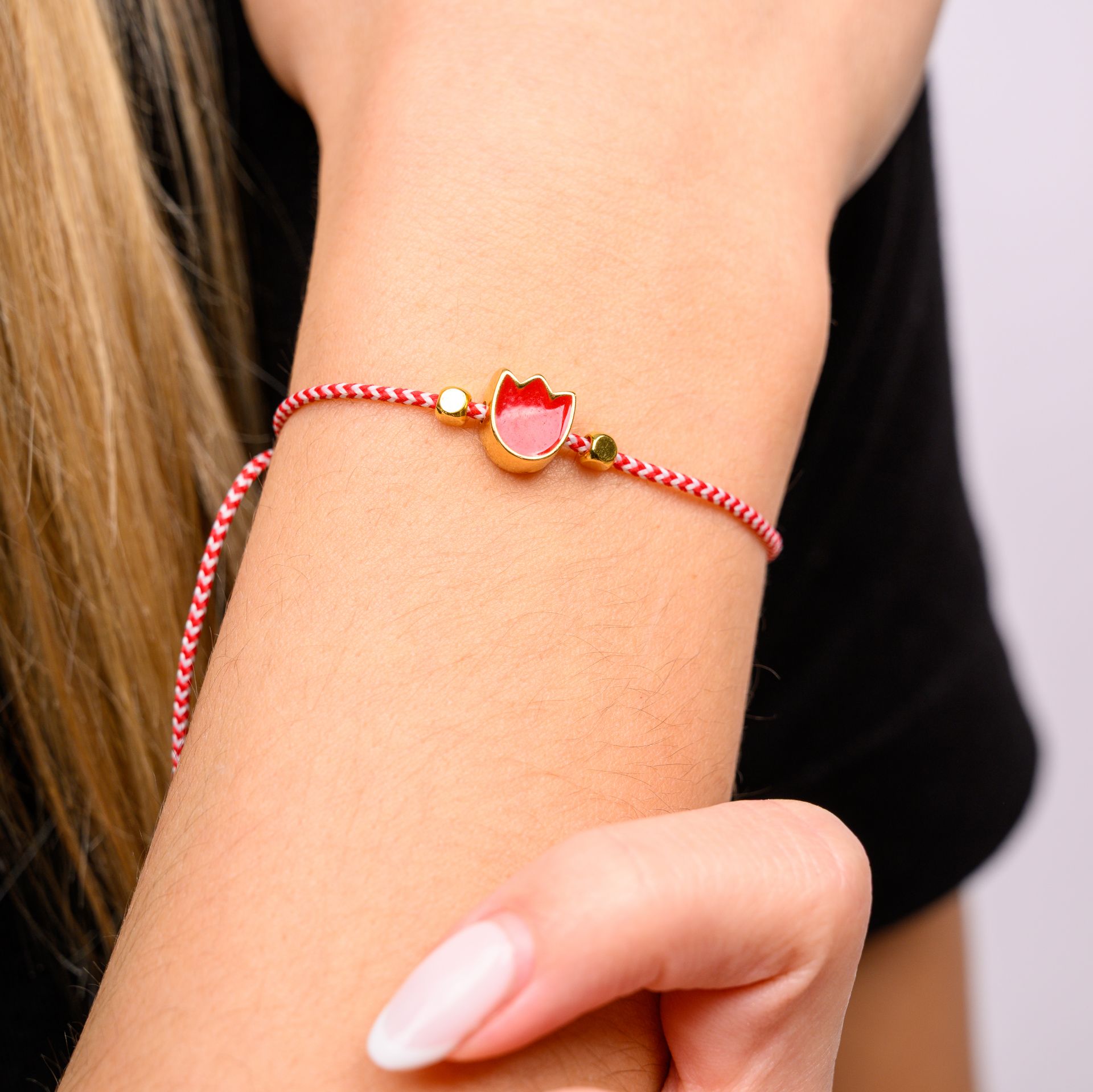 Χειροποίητο μαρτάκι με τουλίπα, σχεδιασμένο ως ένα λιτό καθημερινό κόσμημα που βασίζεται στην παράδοση του Μάρτη και στη διακριτική αισθητική. Το κόκκινο και άσπρο κορδόνι λειτουργεί ως καθαρή βάση, ενώ η τουλίπα προσθέτει ένα ήπιο, αναγνωρίσιμο στοιχείο χωρίς να κυριαρχεί.