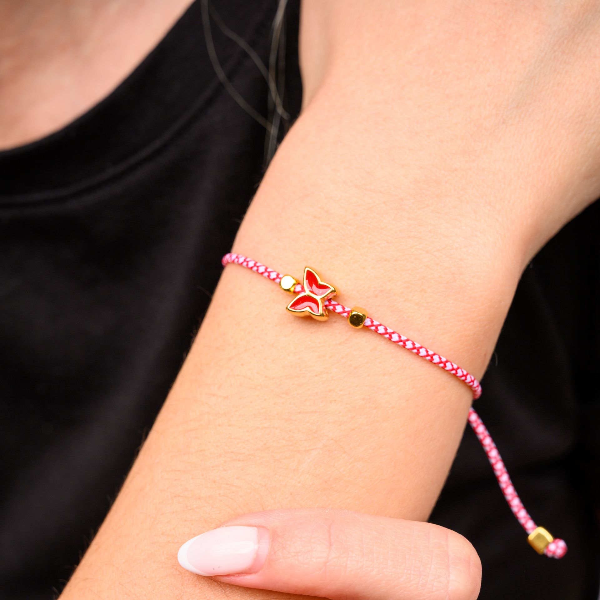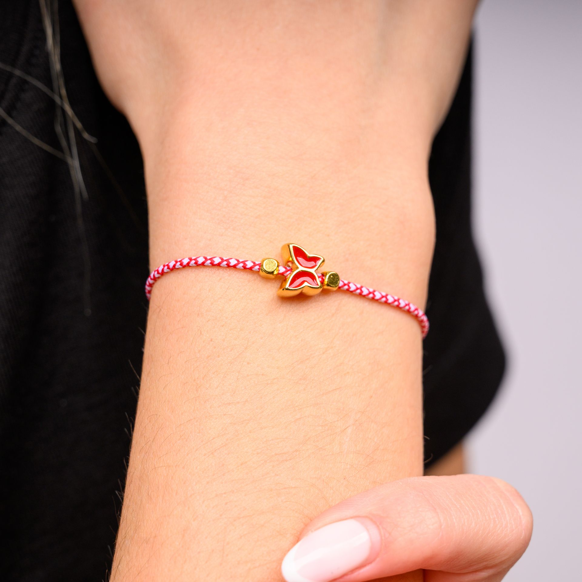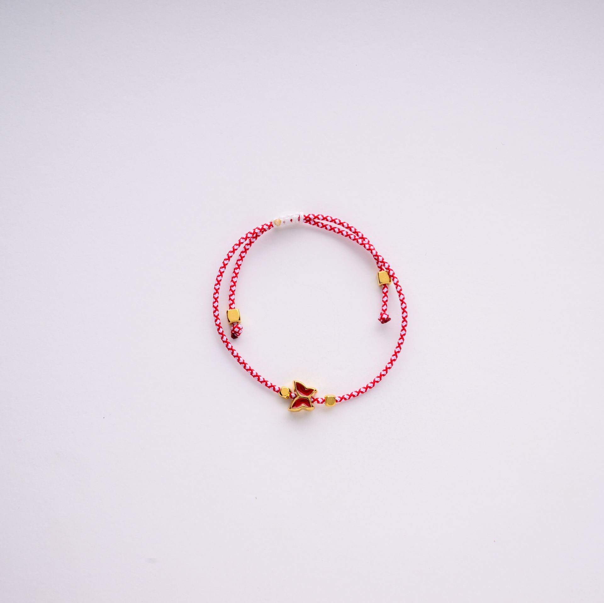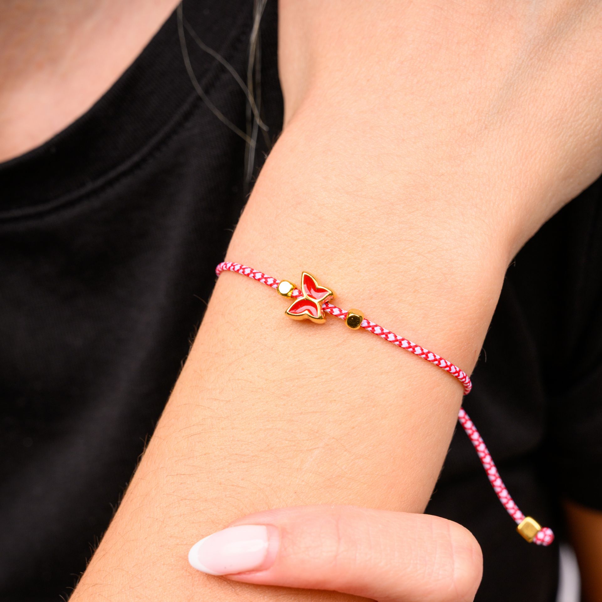 Χειροποίητο μαρτάκι με κόκκινη πεταλούδα, εμπνευσμένο από την παράδοση του Μάρτη και τον συμβολισμό της αναγέννησης και της αλλαγής. Το κόκκινο και άσπρο κορδόνι συνδυάζεται με μια λεπτή πεταλούδα σε κόκκινη απόχρωση, δημιουργώντας ένα κόσμημα με ανοιξιάτικο χαρακτήρα και θετική ενέργεια.