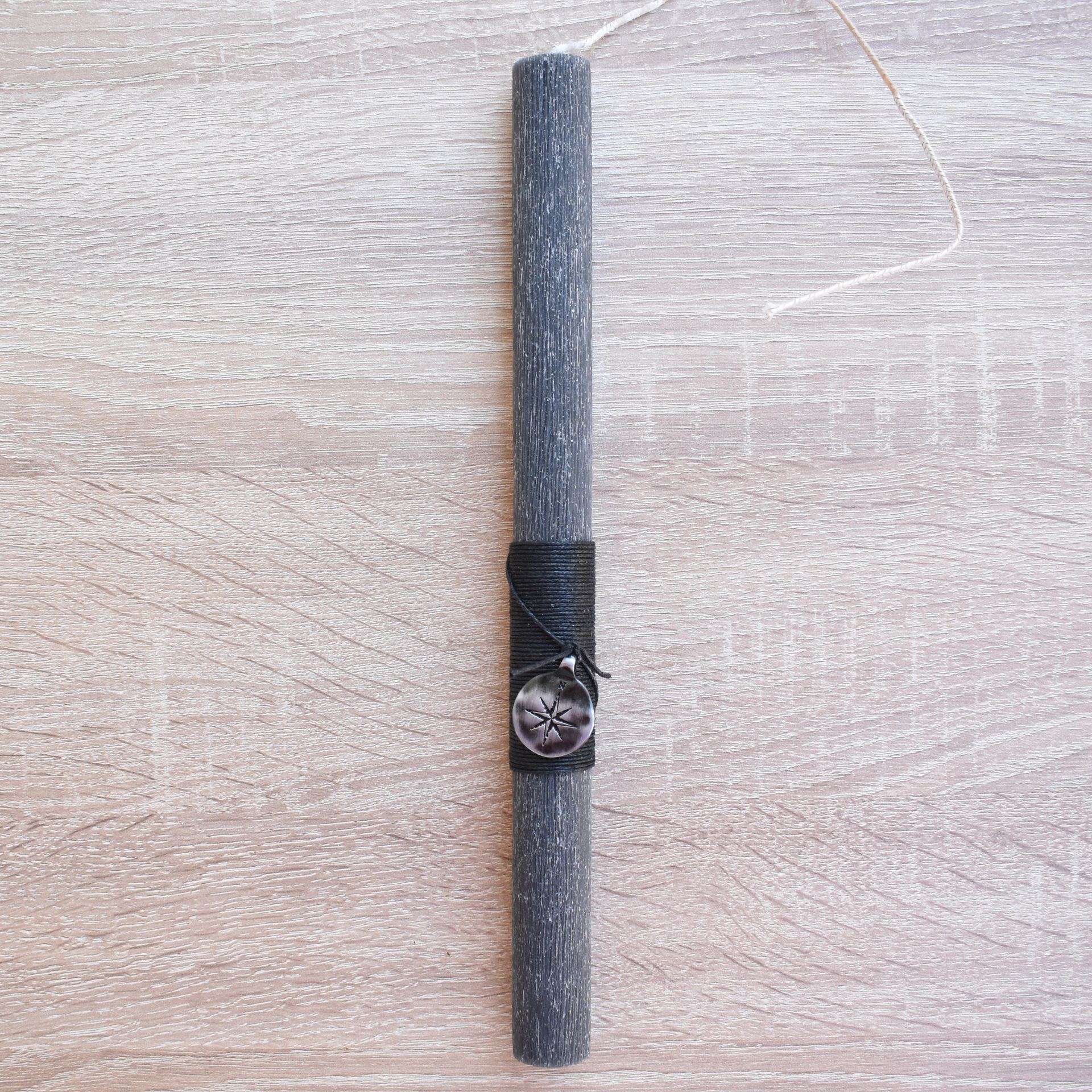 Χειροποίητη πασχαλινή λαμπάδα με μεταλλική πυξίδα, εμπνευσμένη από την έννοια της κατεύθυνσης, της σταθερότητας και της προσωπικής πορείας. Η πυξίδα αποδίδεται ως διακριτικό μεταλλικό στοιχείο που προσθέτει ουσιαστικό συμβολισμό, χωρίς να αλλοιώνει τον αυστηρό και καθαρό χαρακτήρα της λαμπάδας.