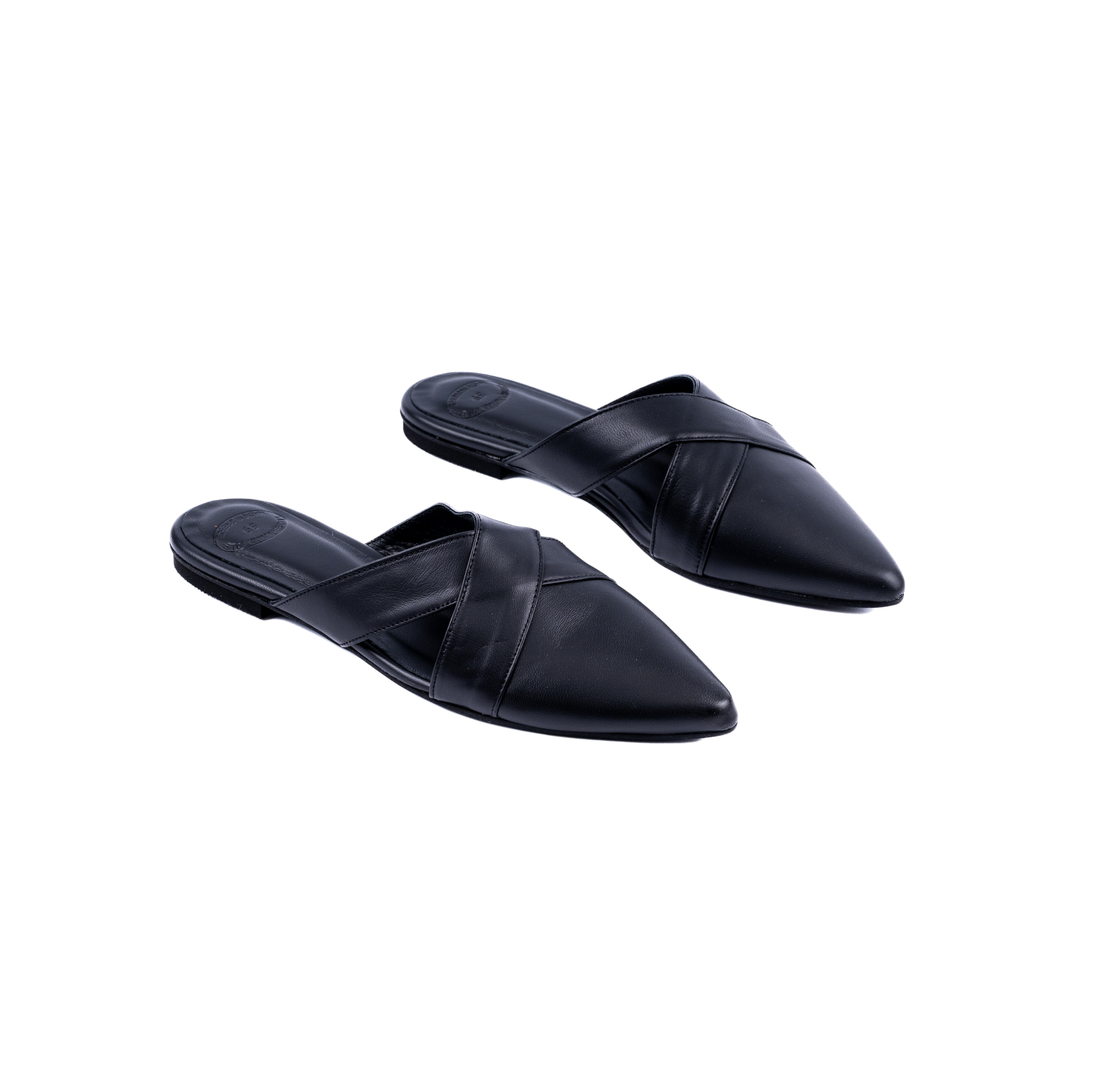 Mules shoes black leather flat