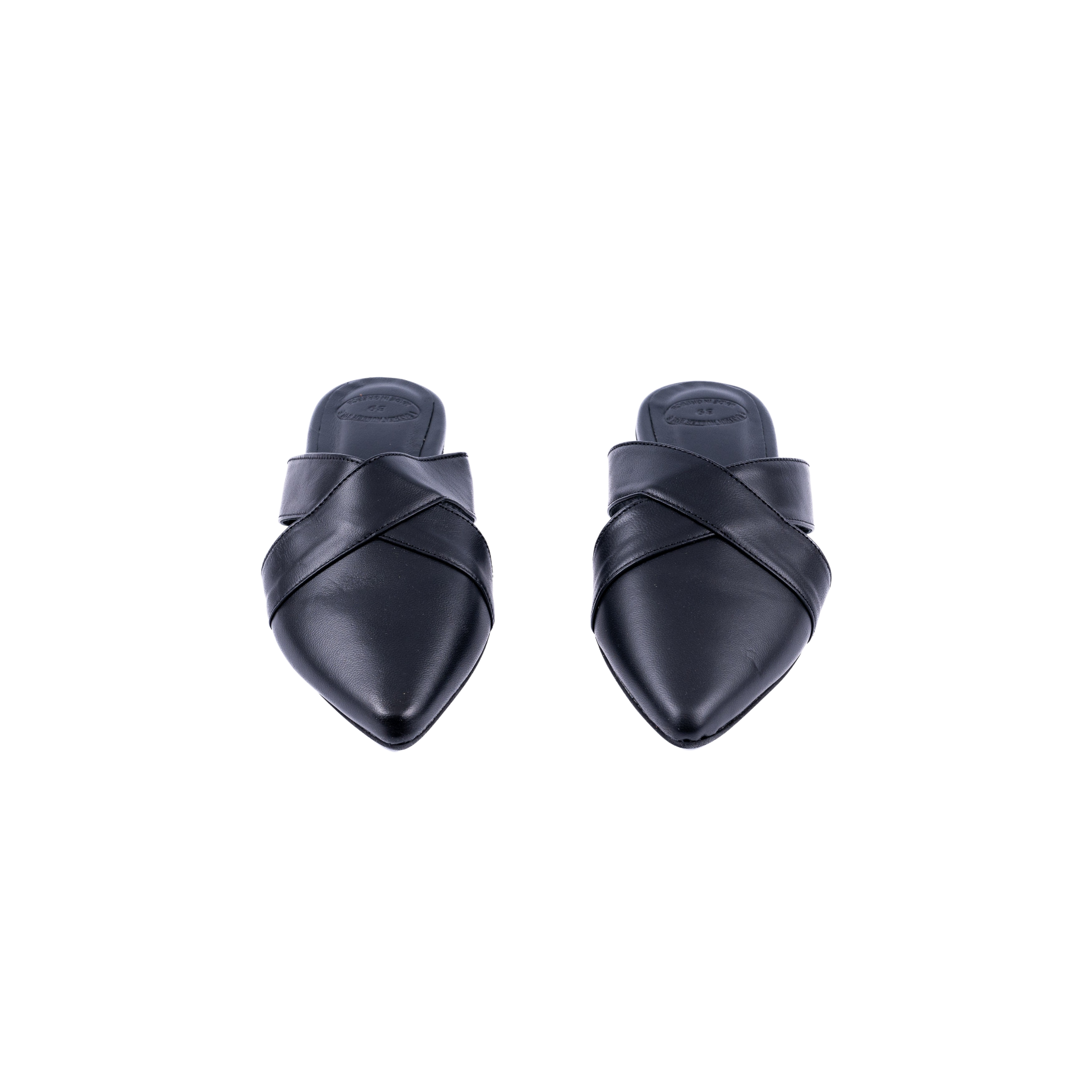 • Black leather mules