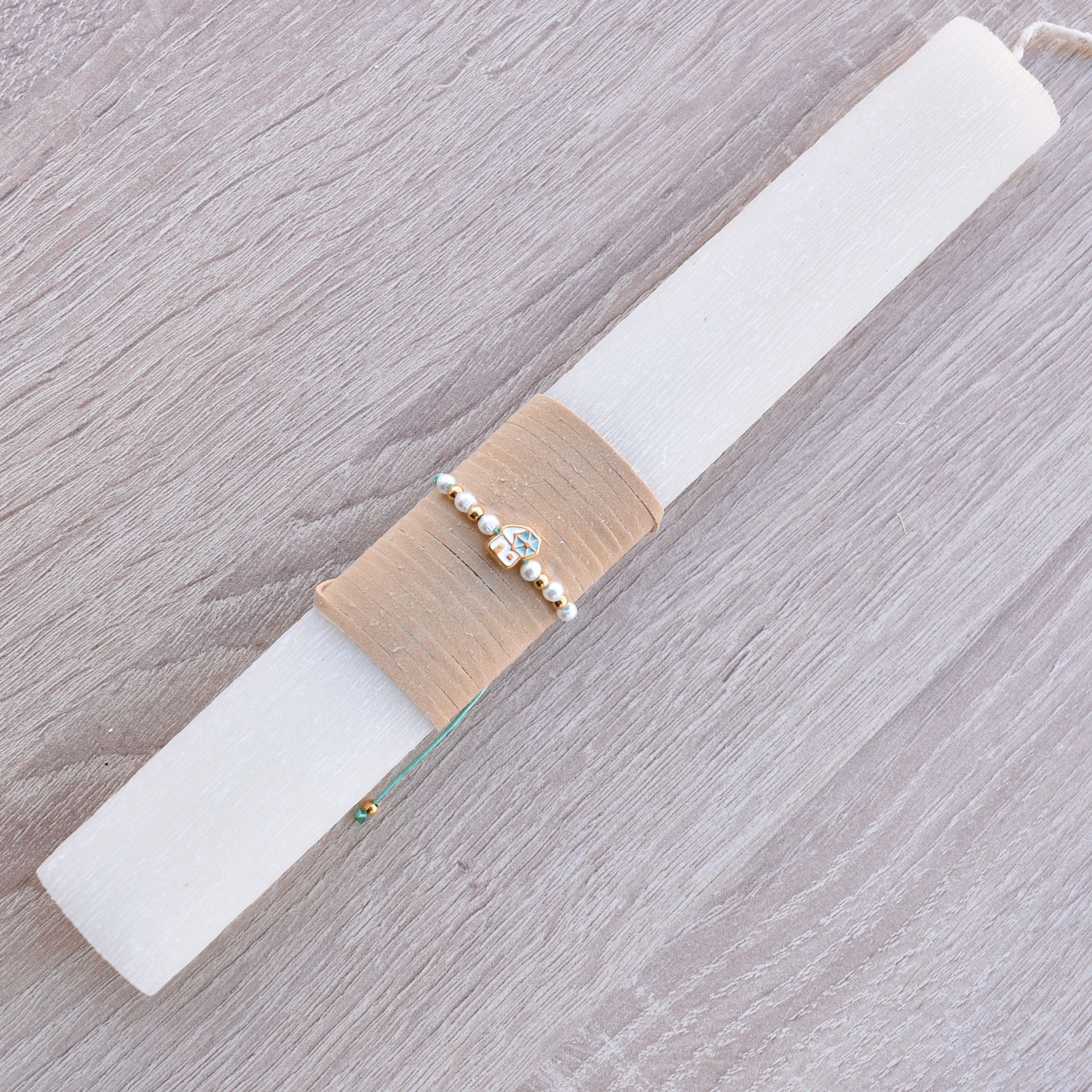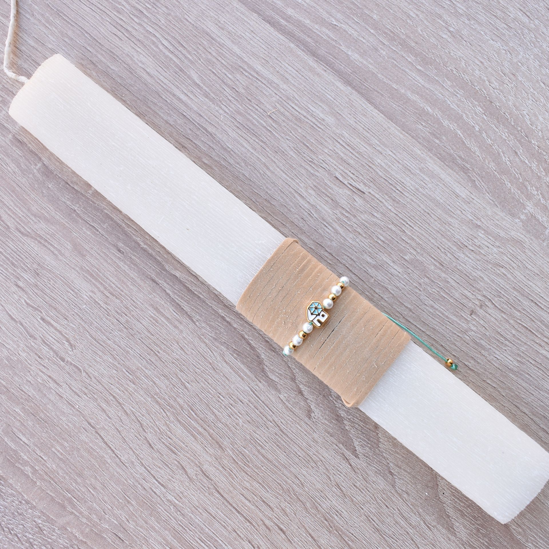 This Greek Easter lambada for women features a delicate windmill bracelet, combining Orthodox Easter tradition with a feminine and symbolic accessory. The windmill detail adds a soft and playful touch, making it stand out among women’s Easter candle collections.