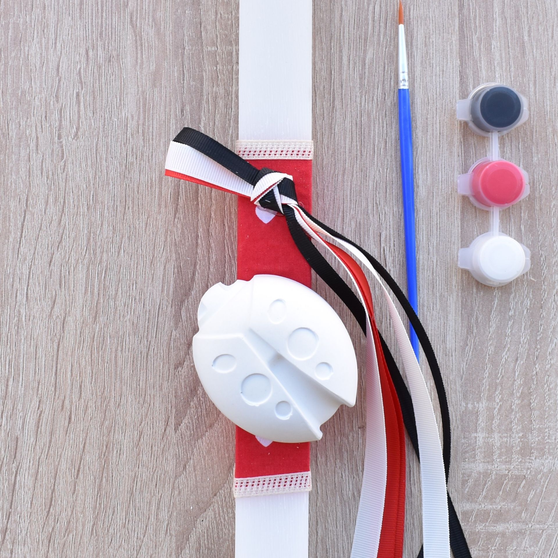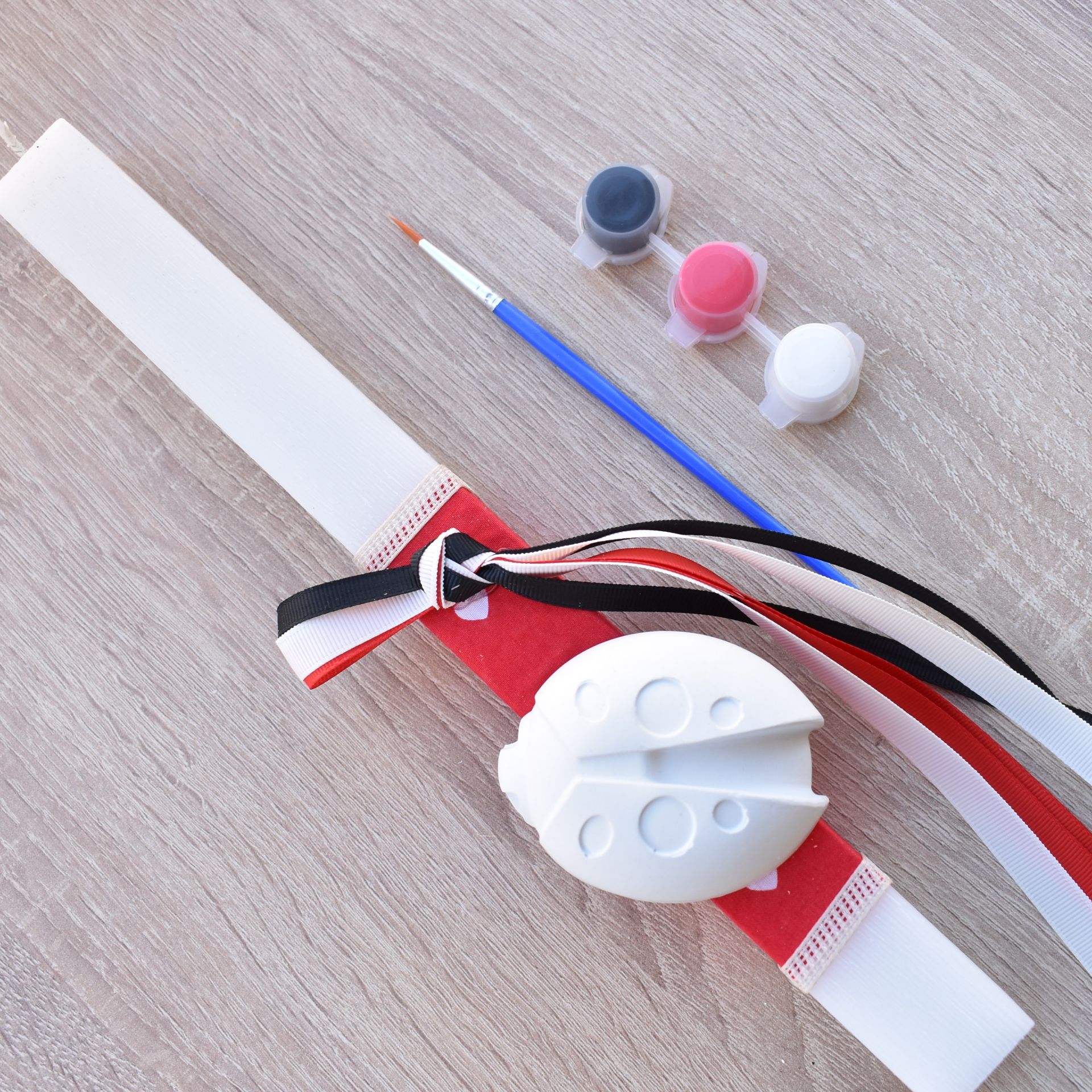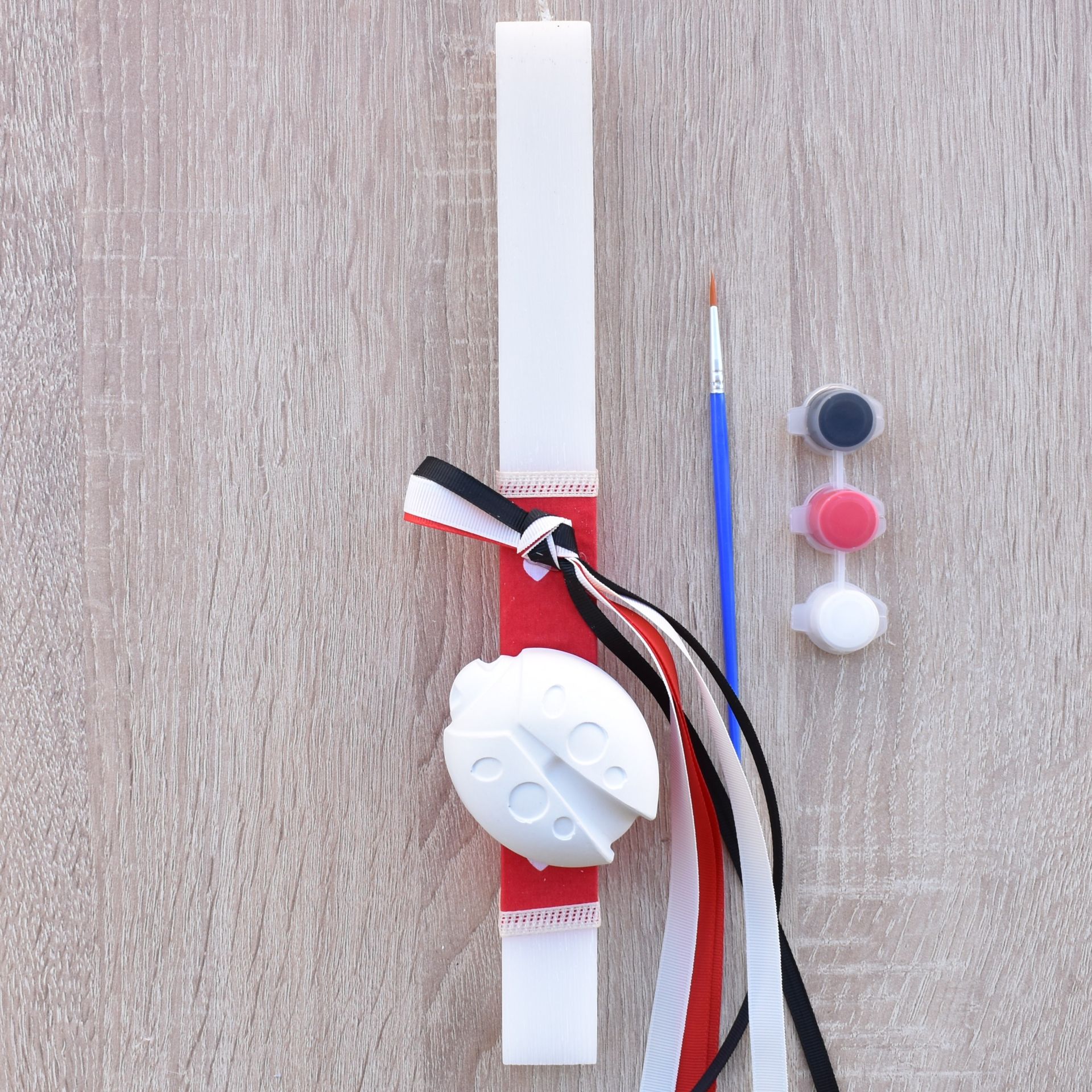 This girls’ Greek Easter candle with ladybug theme combines the traditional Orthodox Easter candle with a fun and creative activity. The Easter candle for girls includes a plaster ladybug decoration, along with a brush and paints, allowing the child to color it in her own unique way.