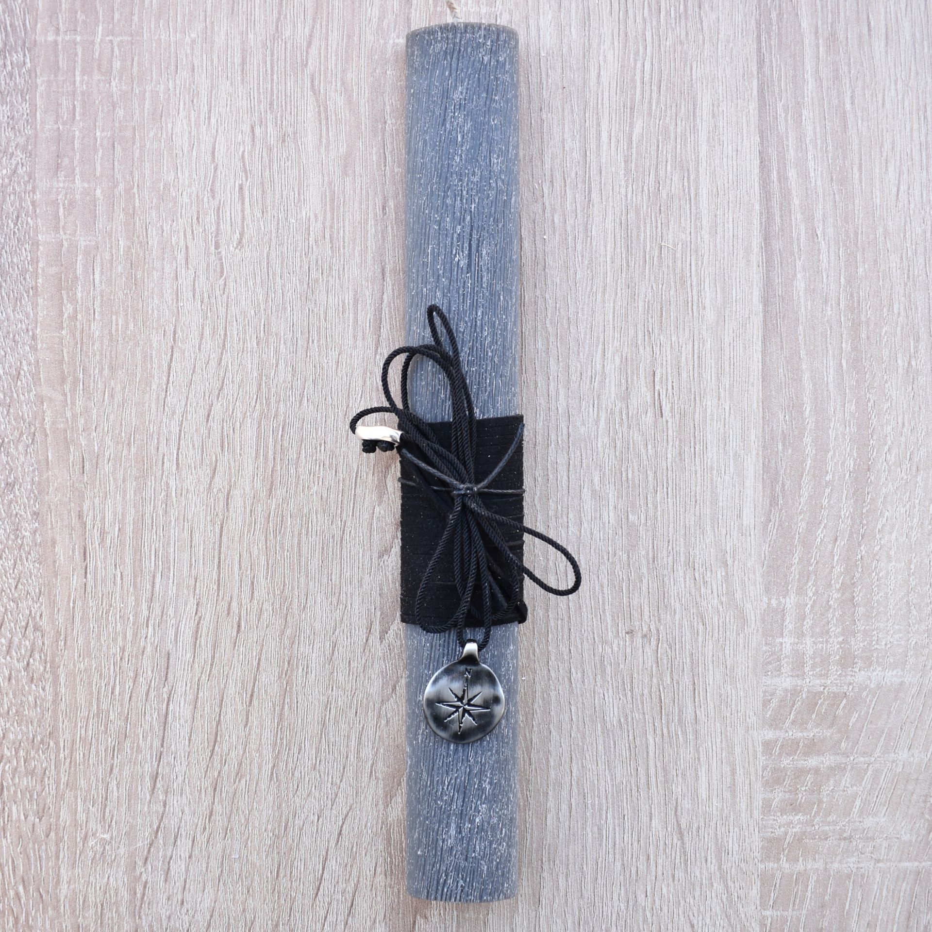 This Greek Easter lambada candle for man features a metal compass necklace, combining Orthodox Easter tradition with meaningful symbolism. The compass represents direction and purpose, making it a suitable choice for teenage boys and adult men.