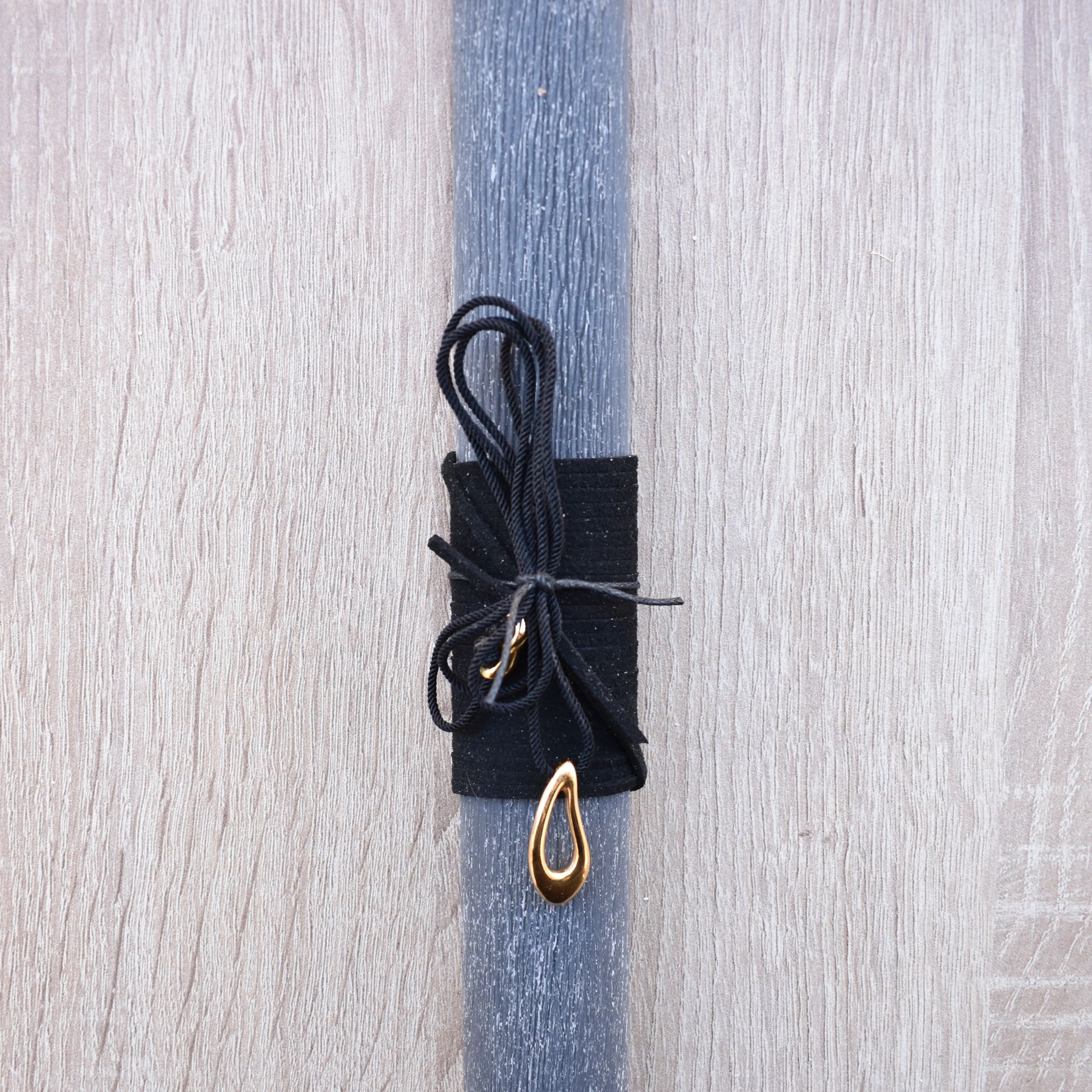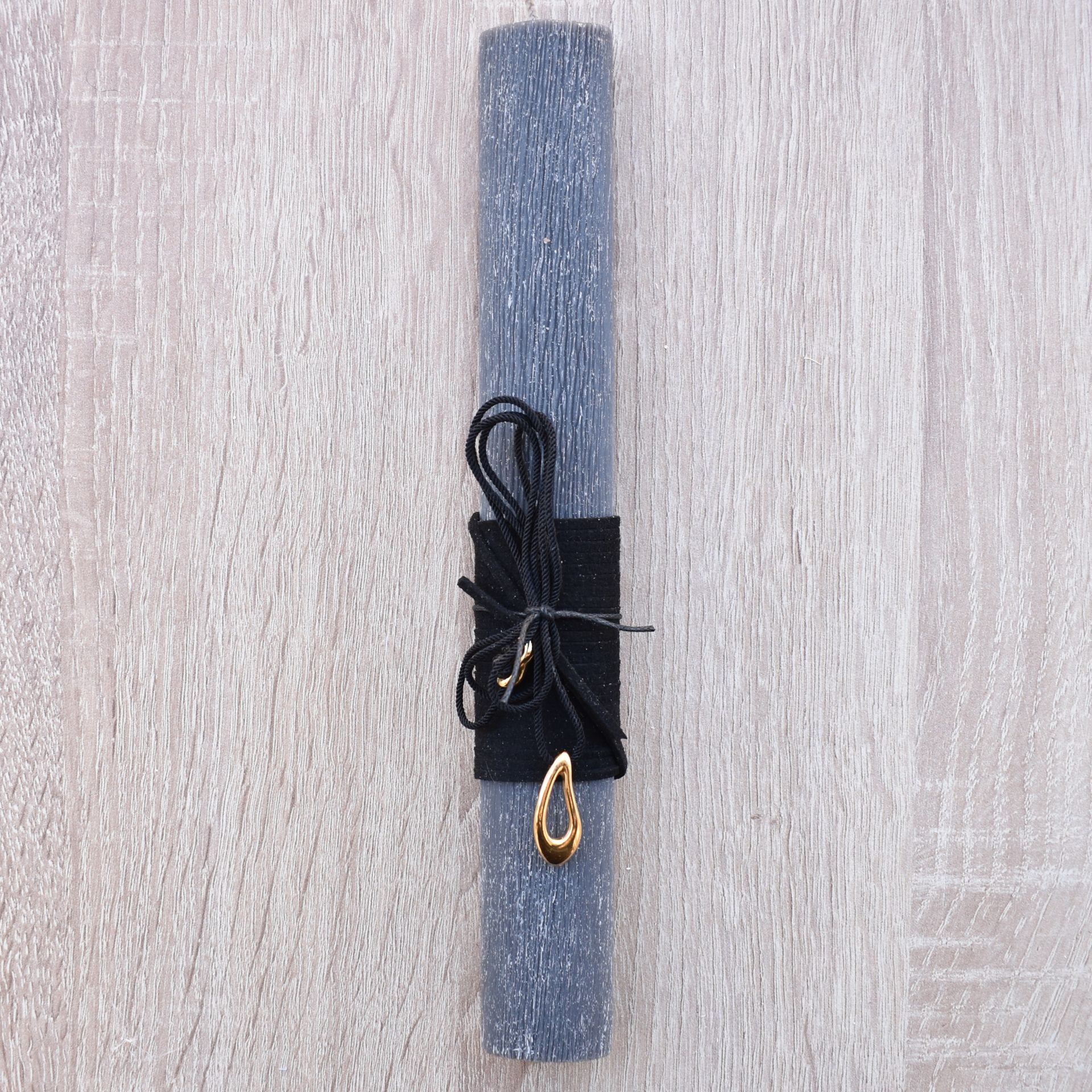 Easter candle decorated with a neclace with a metallic drop gold.