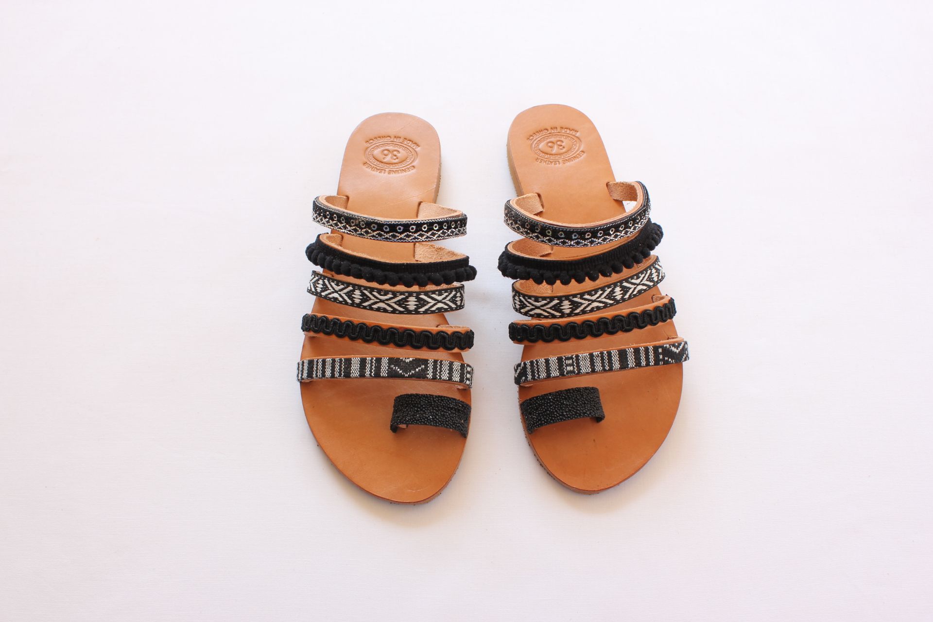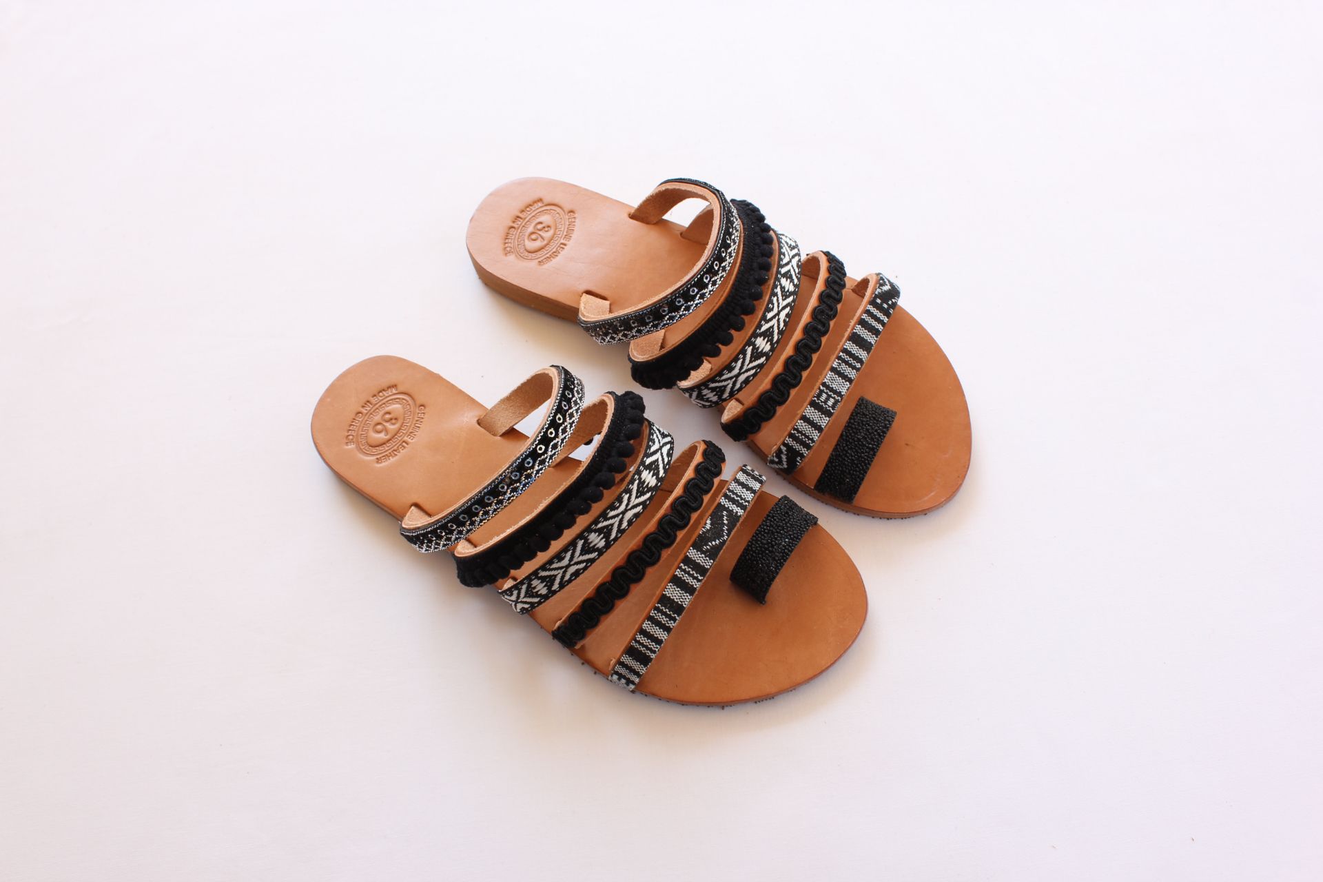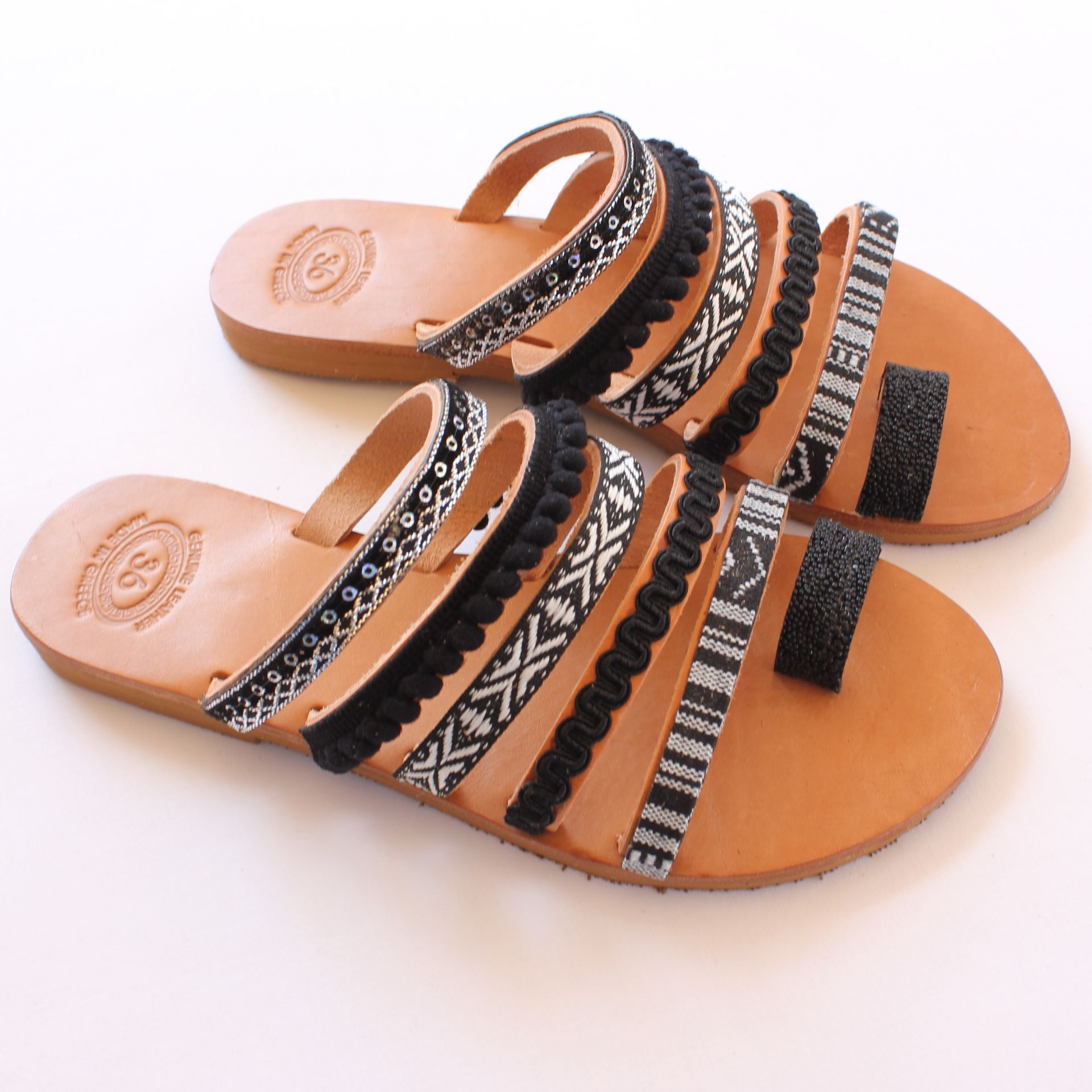 Woman leather sandals black and white