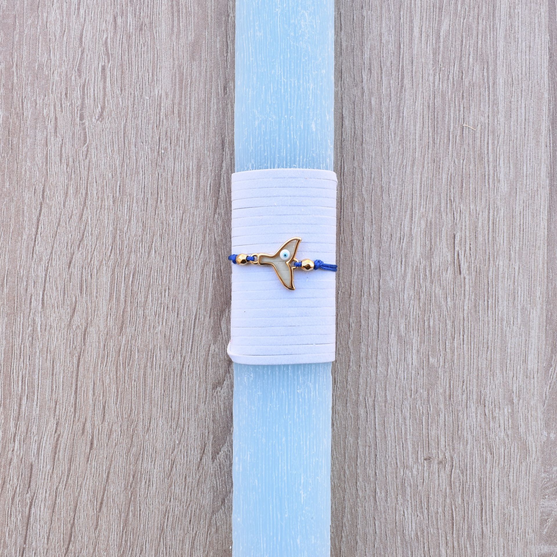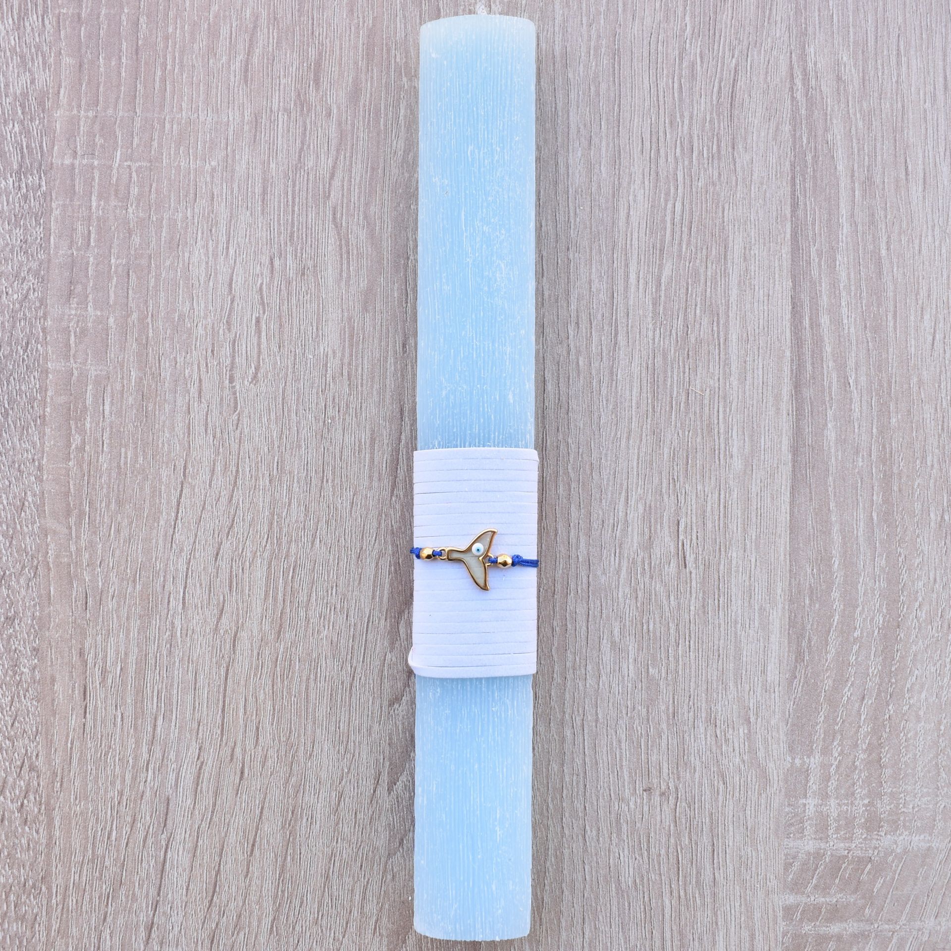 This women’s Greek Easter candle features a delicate mermaid tail bracelet, combining Orthodox Easter tradition with a modern feminine accessory. The mermaid tail detail adds a unique and elegant touch, making it stand out among women’s Easter lambades collections.