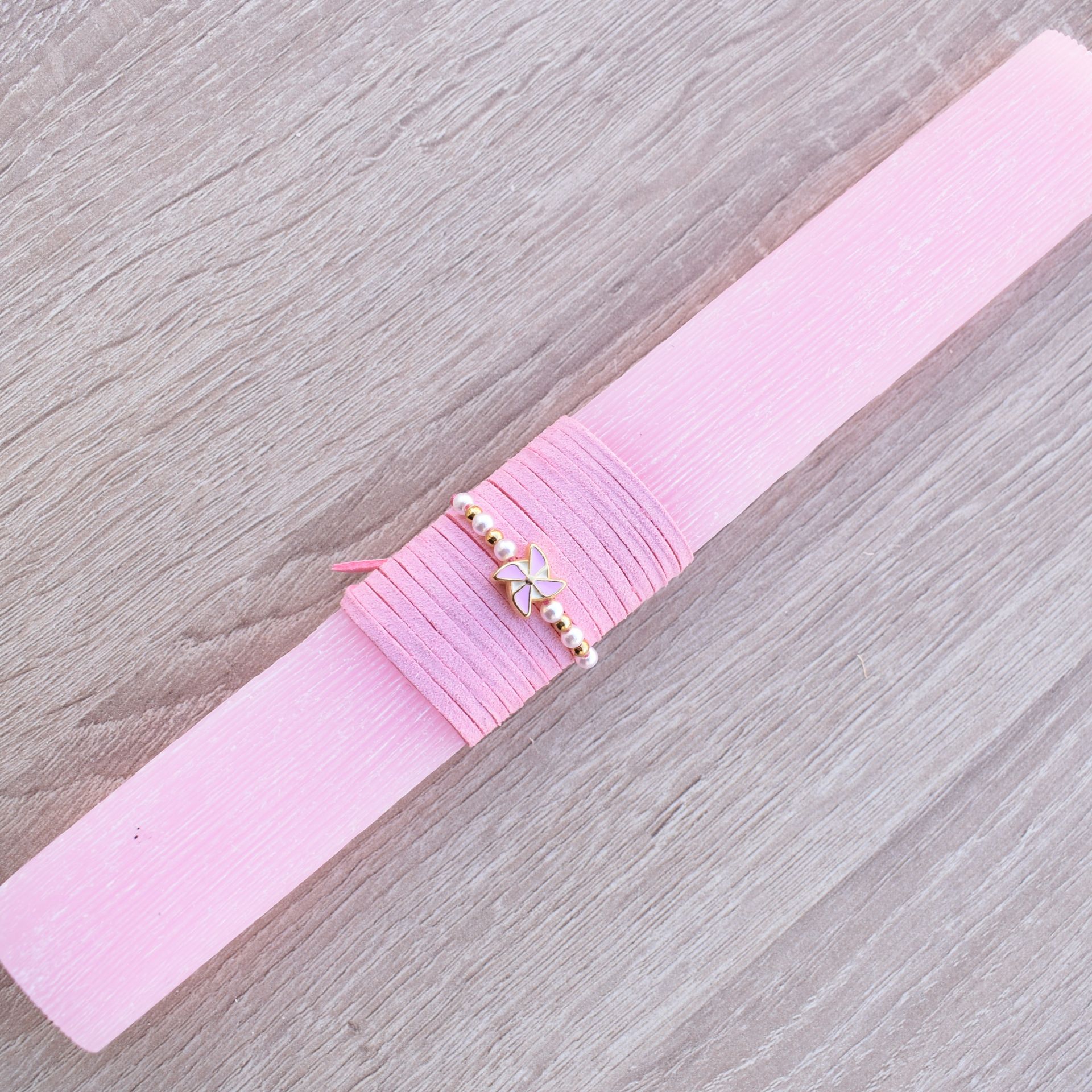 This women’s Greek Easter candle features a delicate windmill bracelet, combining Orthodox Easter tradition with a light and meaningful accessory. The windmill adds a soft and optimistic touch, making it stand out among women’s Easter lambades collections.