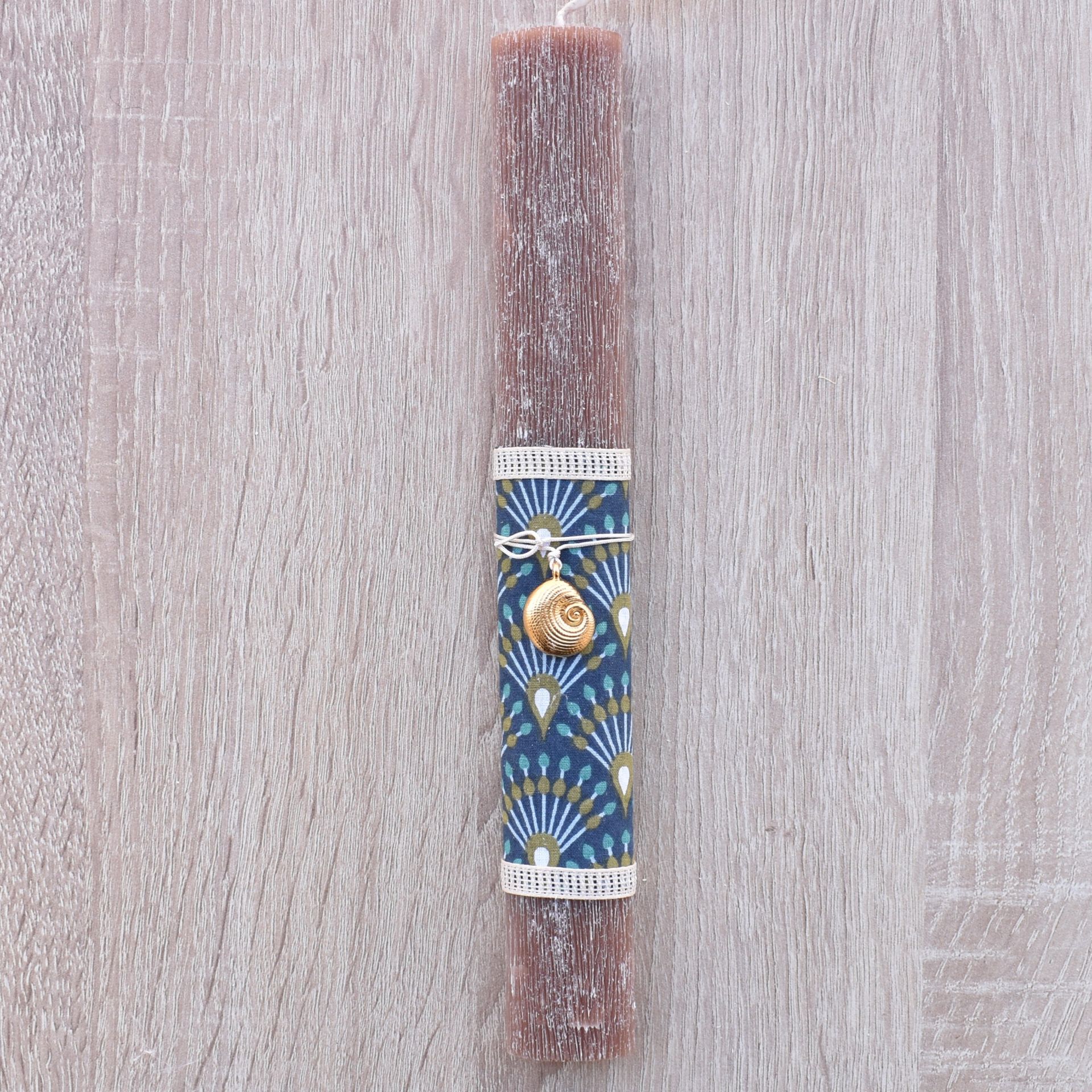This Greek Easter candle for women features a seashell detail, combining Orthodox Easter tradition with a refined marine-inspired element. The shell adds natural elegance and a soft feminine touch, making it stand out among women’s Greek Easter lambades collections.