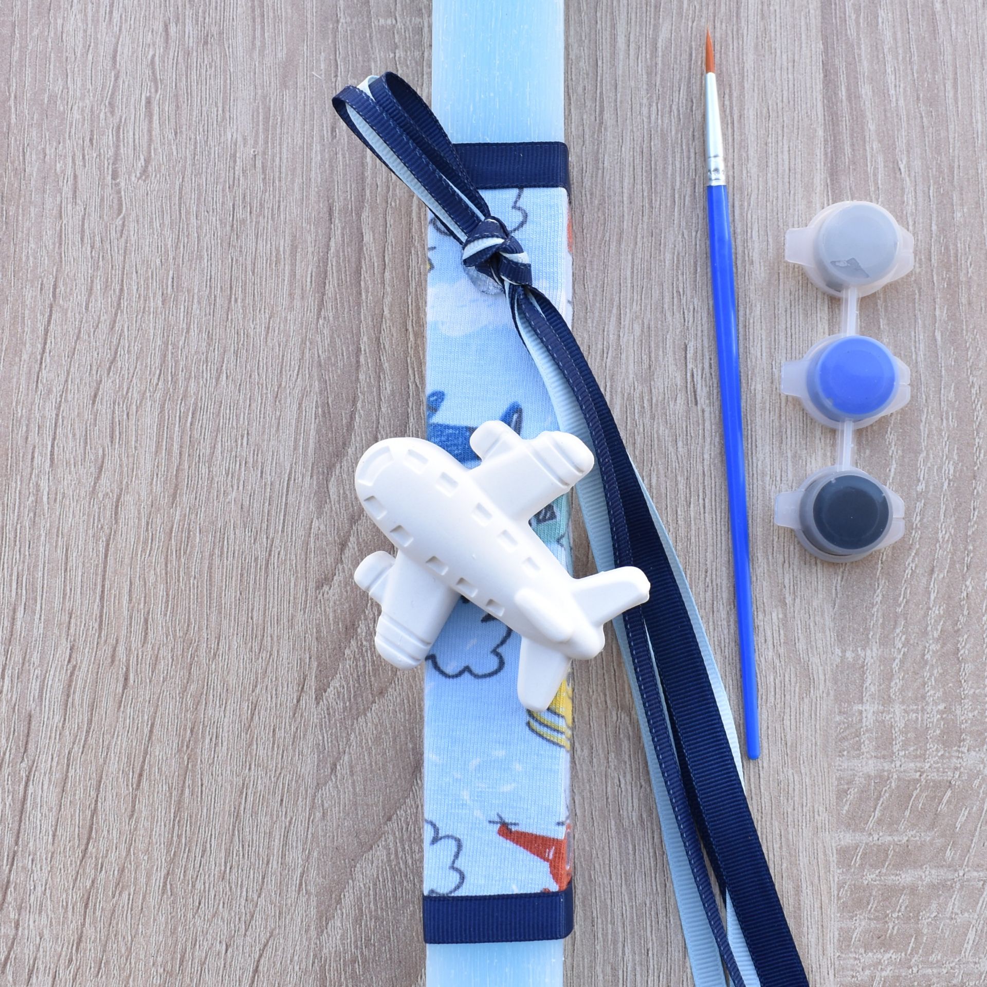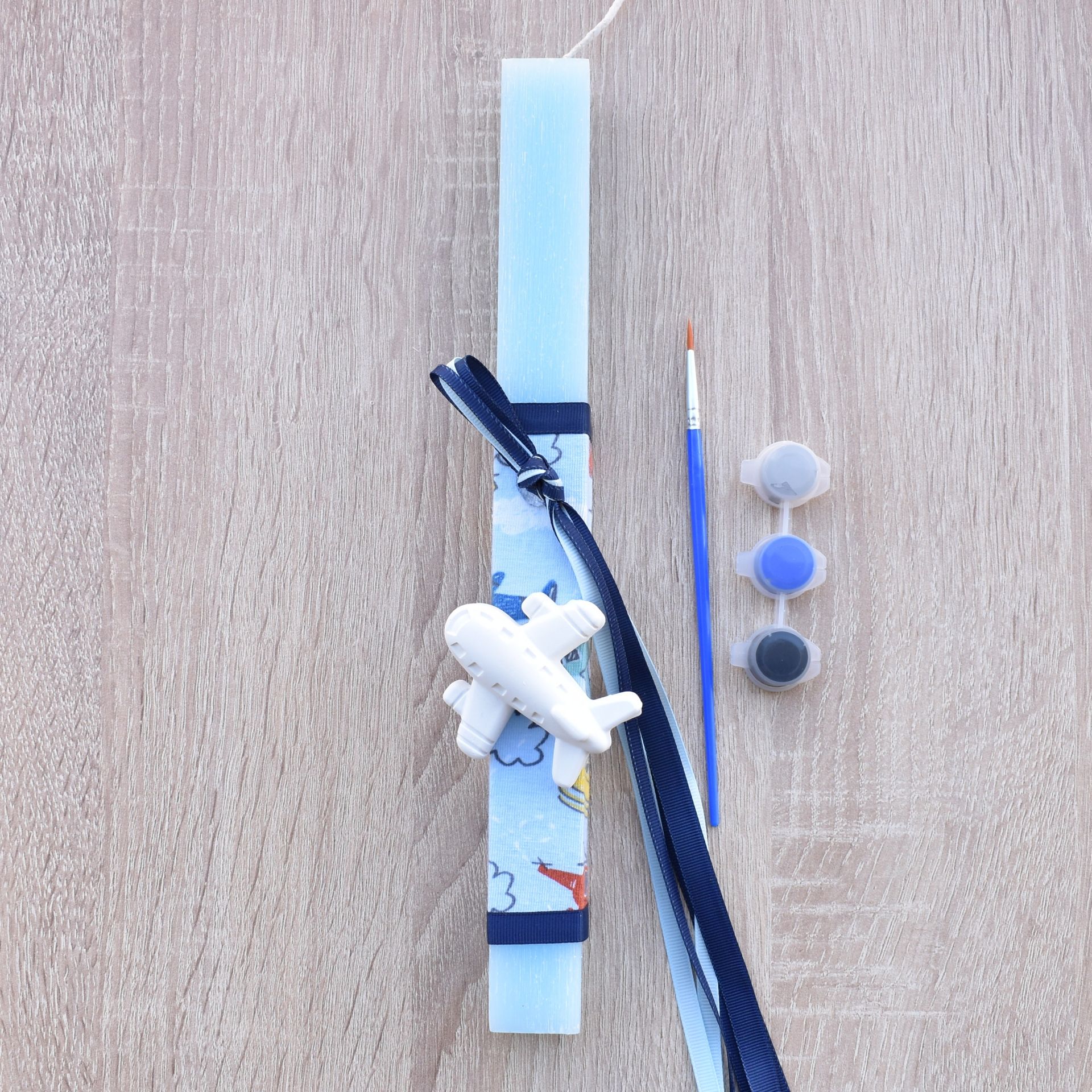 This boys’ Greek Easter candle with airplane theme combines the traditional Orthodox Easter candle with a fun creative activity. The Easter candle for boys includes a plaster airplane decoration, along with a brush and paints, allowing the child to color it in his own unique way.