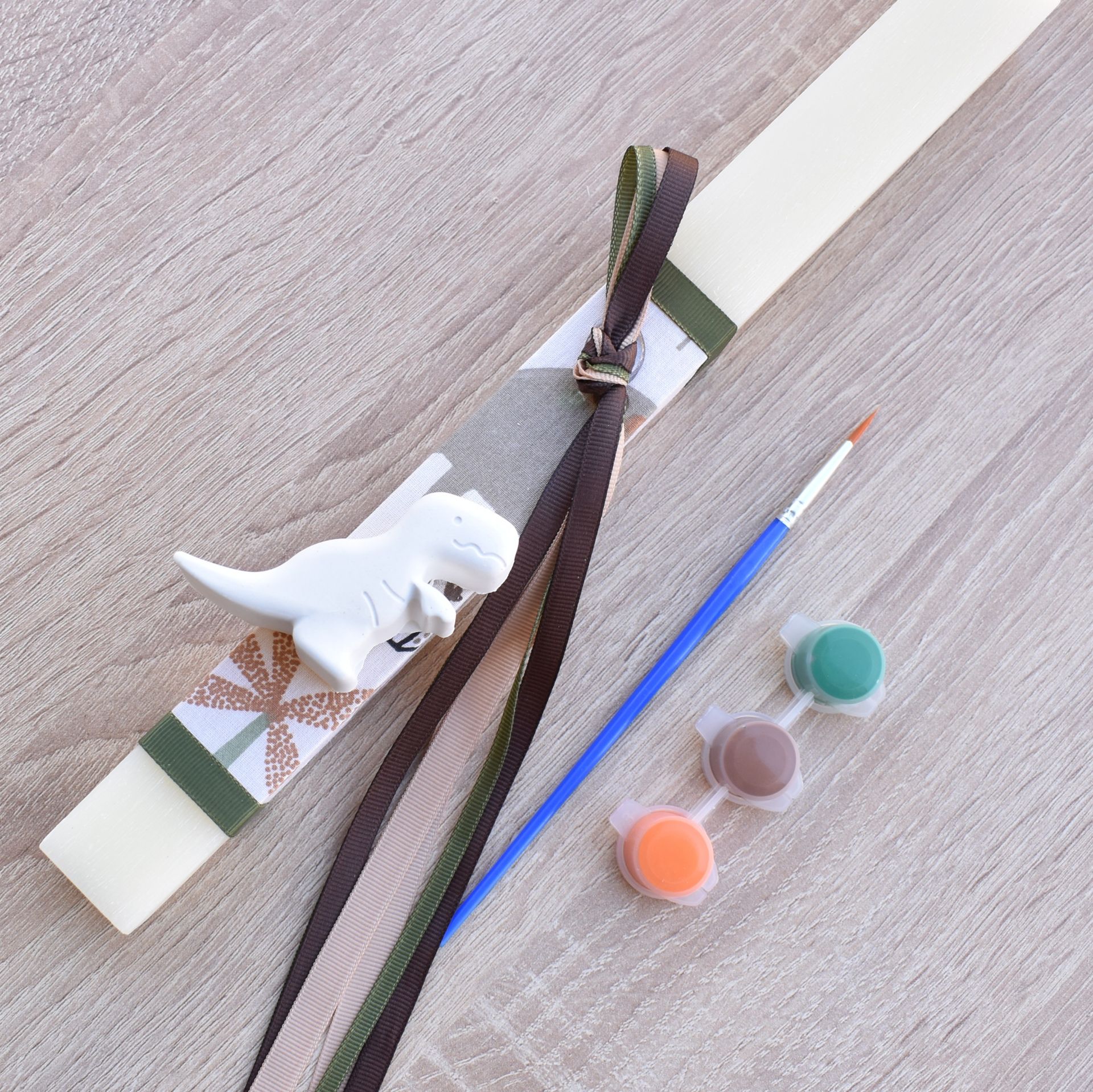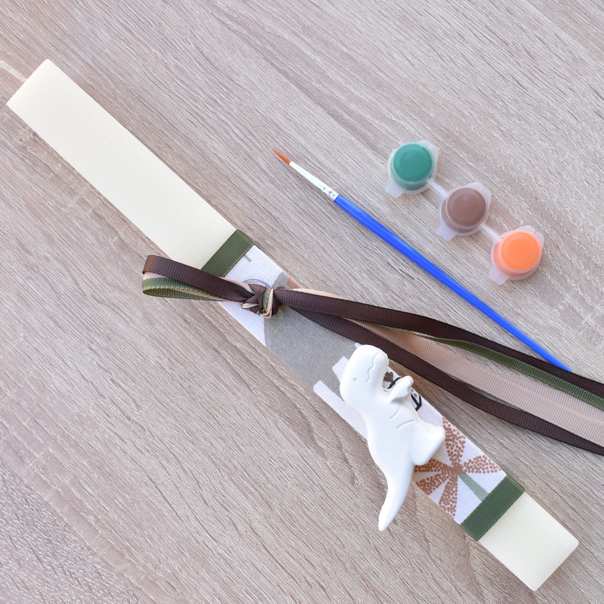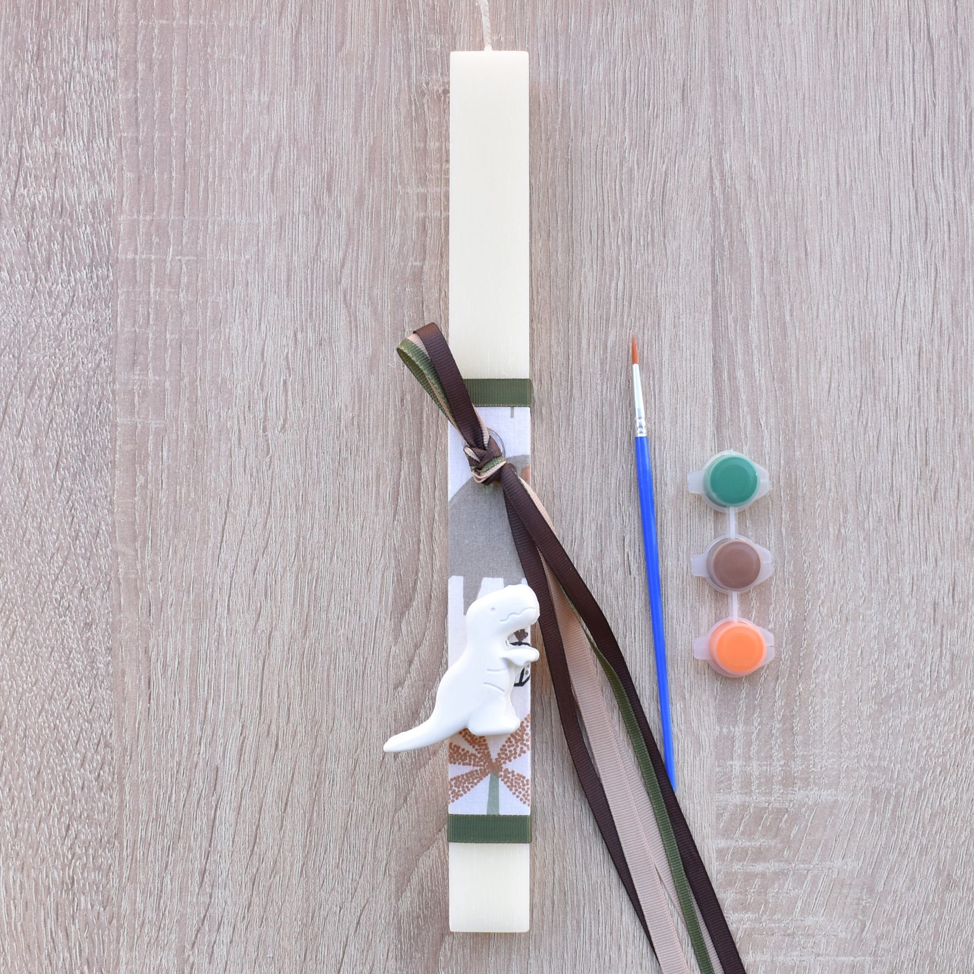 This boys’ Easter lambatha with dinosaur theme is a dynamic choice for Orthodox Easter, ideal for children who love prehistoric adventures. The Easter candle for boys includes a plaster dinosaur decoration, along with a brush and paints, allowing him to color it using his own imagination.