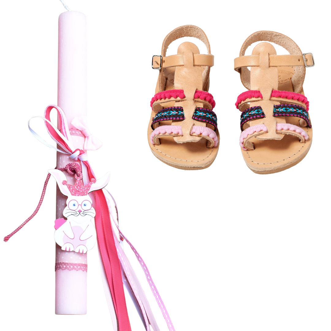 Easter candle decorated with a wooden bunny pink
